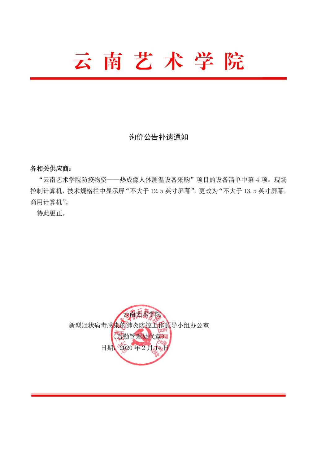 询价公告补遗通知