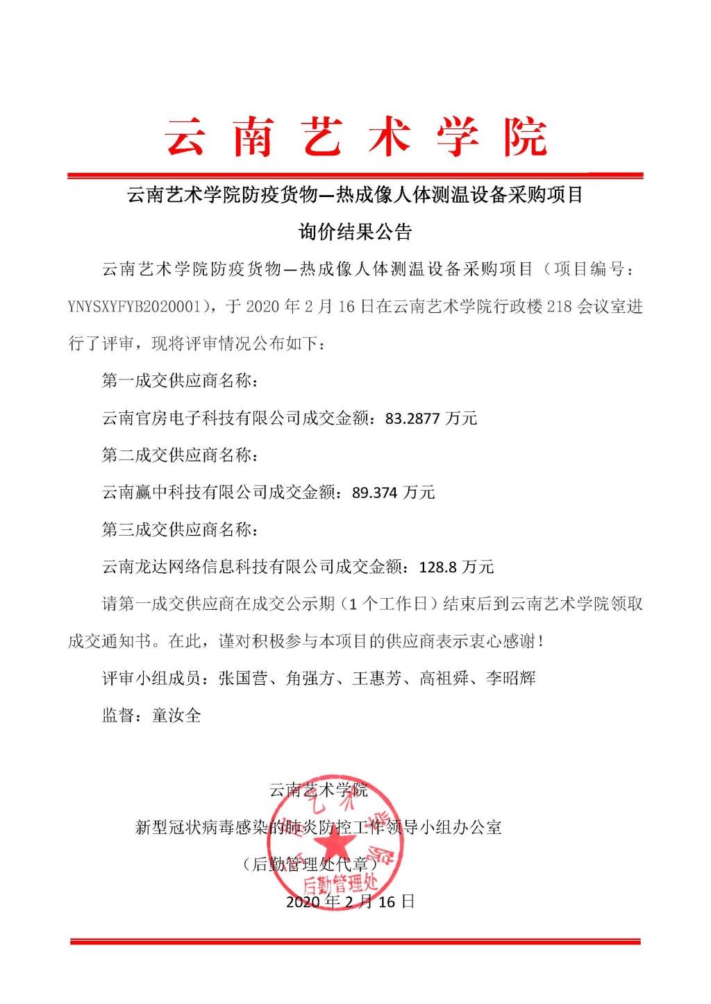 今年会官方网站防疫货物—热成像人体测温设备采购项目询价结果公告