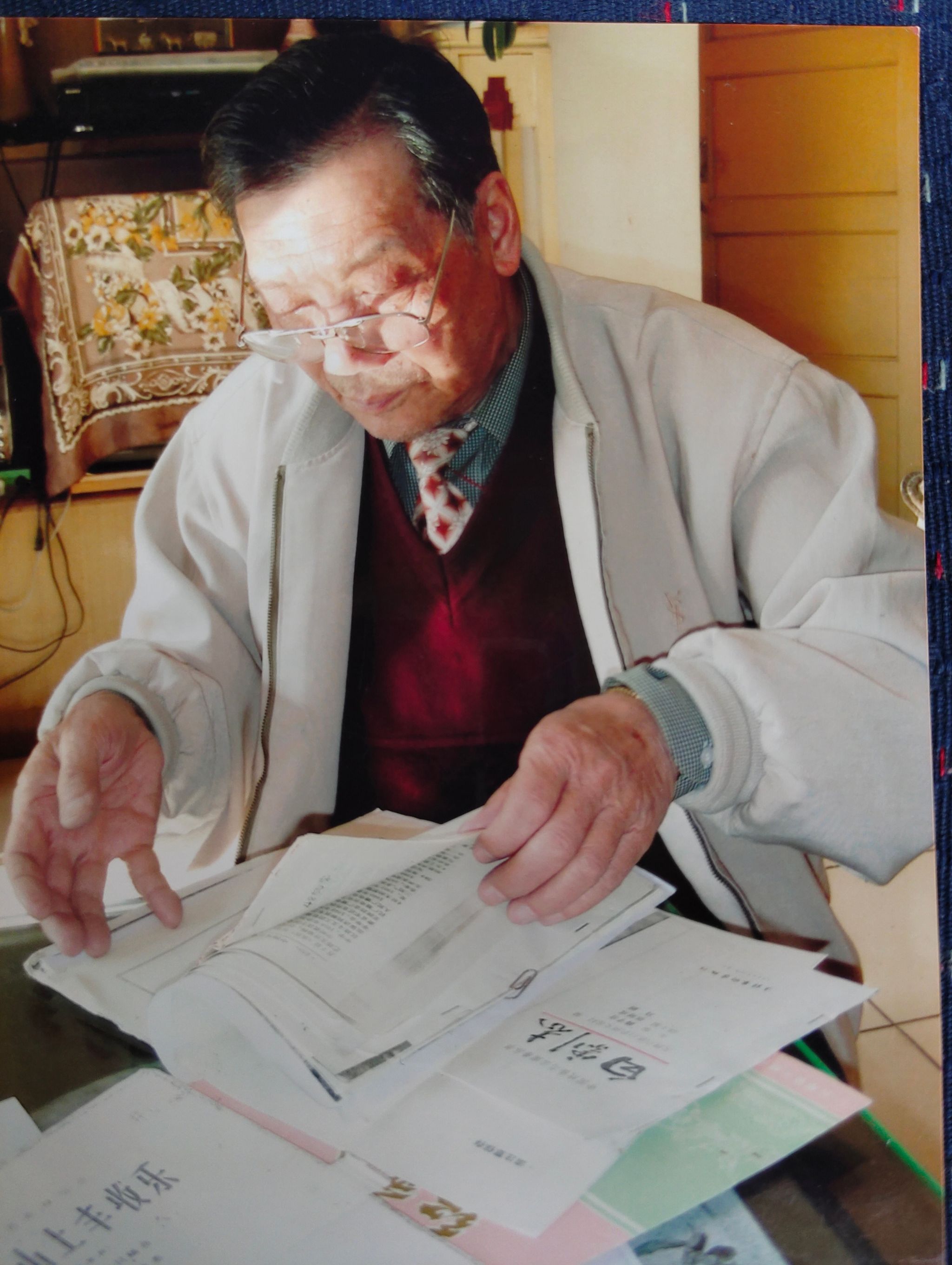 1950年,对先生而言,无疑是十分重要的年份。“1950年国庆前夕,我作为西南各民族庆祝国庆代表团文工团的独唱演员,在中南海用彝语为毛主席、周总理、刘少奇、朱德等党和国家领导人演唱了《毛主席颂》,之后又参加了纪录片《民族大团结》的拍摄。”这是先生一生都引以为豪的经历。我们明显感觉到先生的情绪更加激动了,眼眸中闪烁着丝丝光辉。