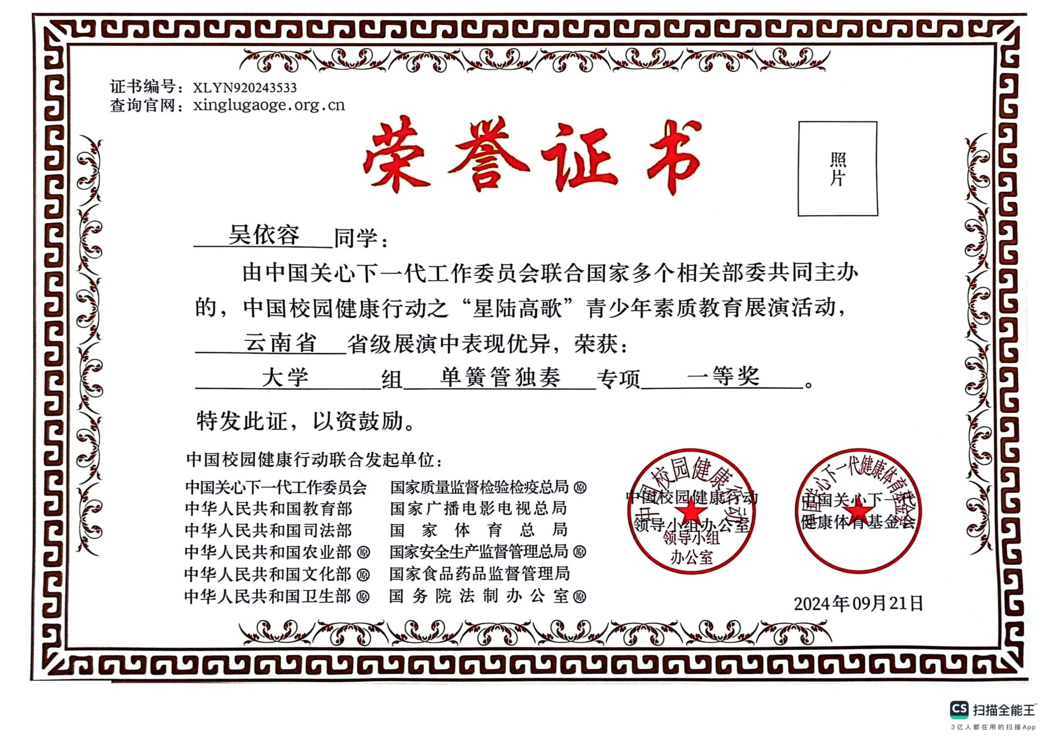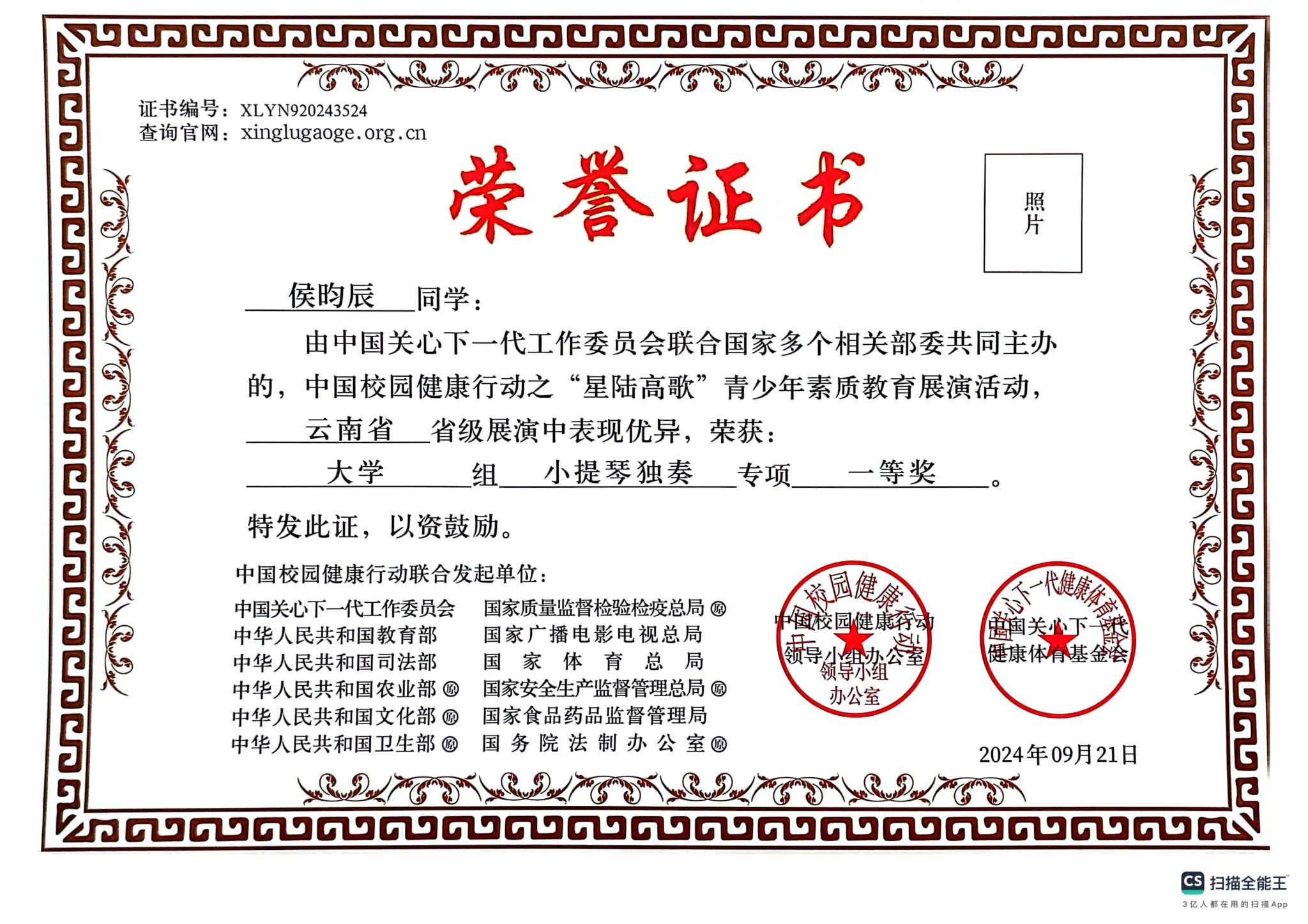 附:获奖证书