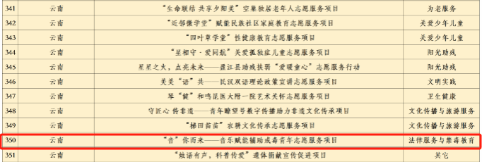 《“音”你而来——音乐思政辅助矫治戒毒青年志愿服务项目》,以“音乐思政+辅助矫治戒毒”为宗旨,针对性开设民族音乐体验课,由团队师生介绍中国传统民族乐器和讲授相关理论课程,以戒毒人员为主体让其融入音乐中,用音乐这双无形的手对他们开展柔性疗愈。该项目得到了戒毒所领导的高度重视和肯定,获得了良好的社会反响,扩大了团队影响力,展现了云艺学子精神面貌,体现了艺术服务社会的本质。