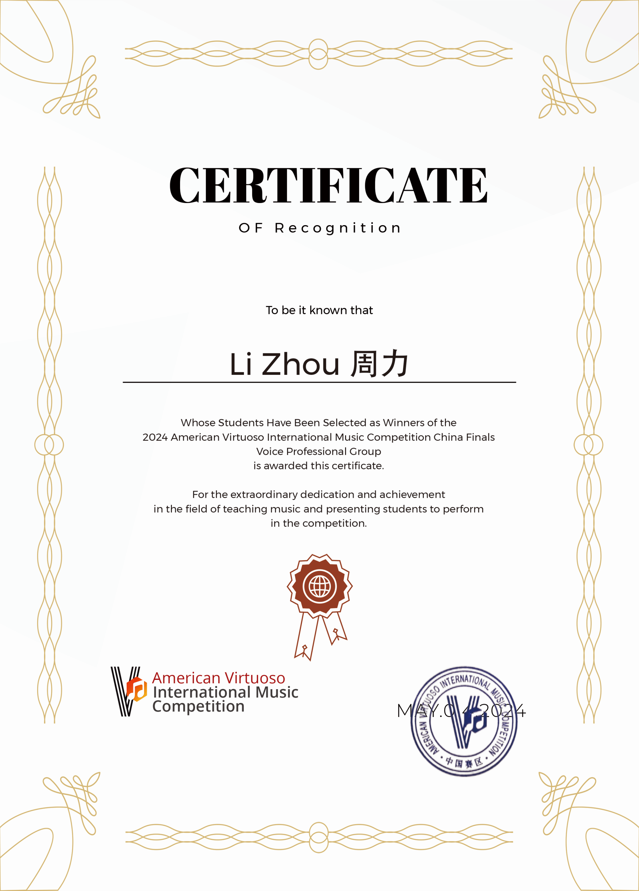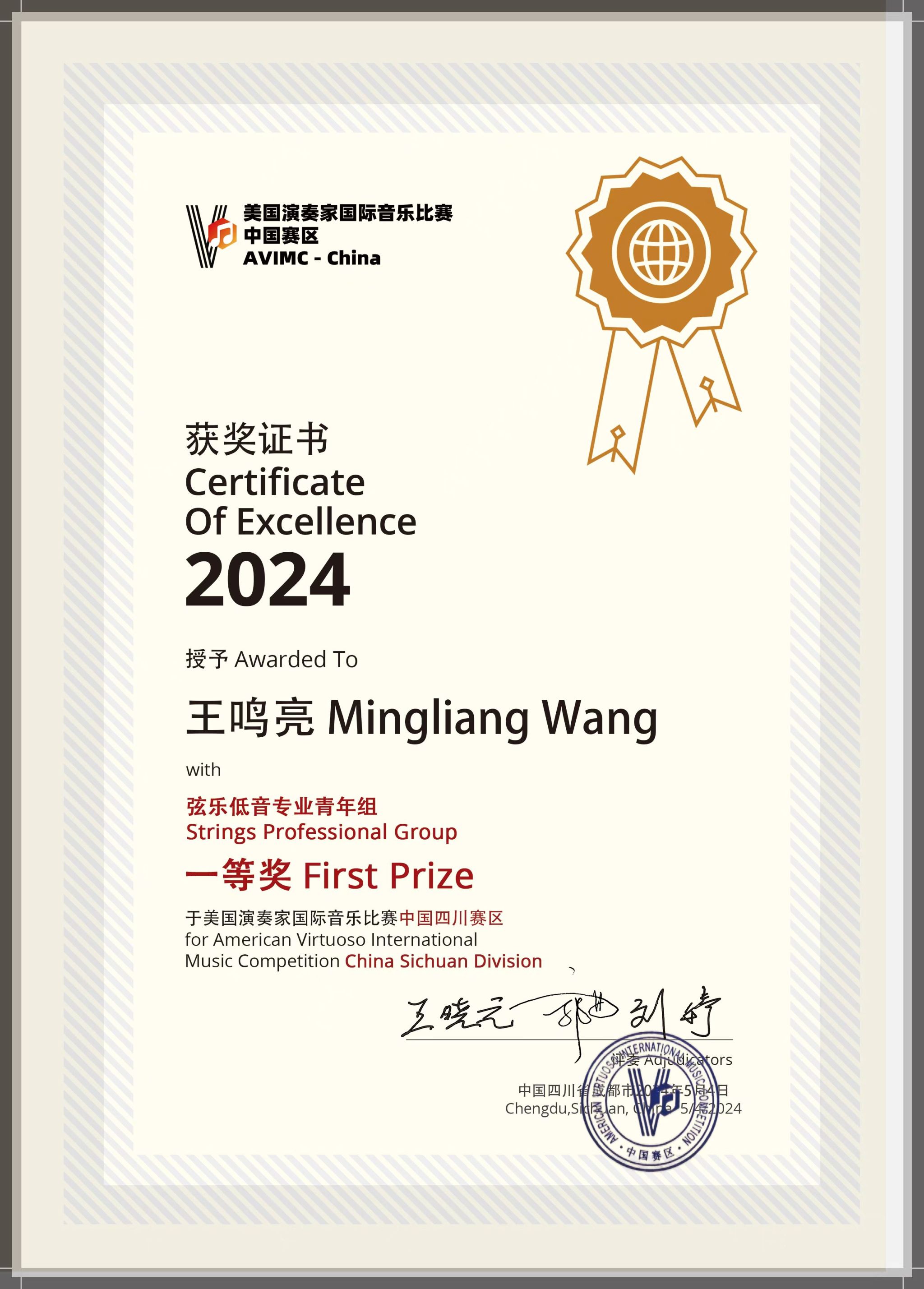2024年5月4日,音乐学院2022级音乐表演专业管弦打击乐演奏班学生王鸣亮在美国演奏家国际音乐比赛中国赛区总决赛中获弦乐低音专业青年组一等奖,指导教师为音乐学院管弦系周力副教授。