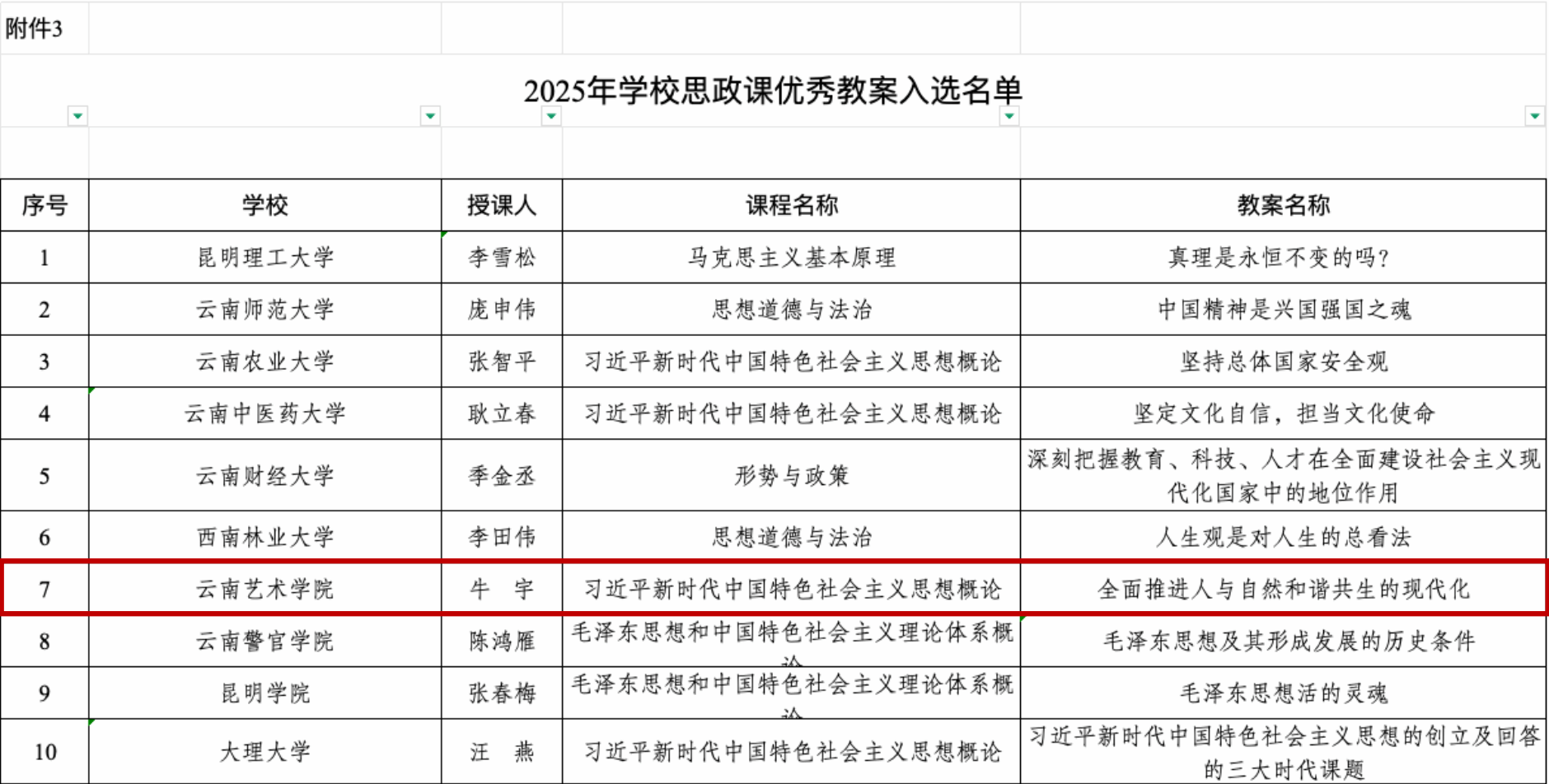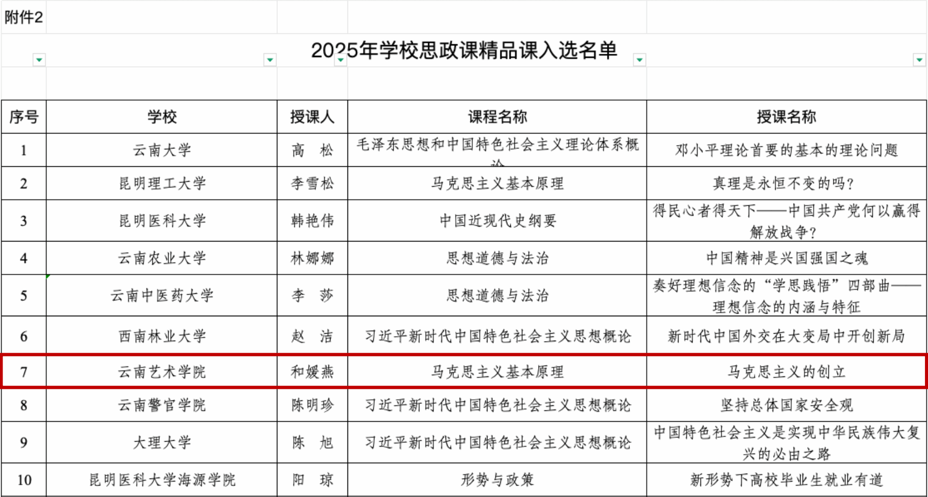 近日,由云南省委教育工委组织开展的云南省学校思政课名师工作室、精品课程、优秀教案遴选工作圆满落幕。我校和媛燕老师的精品课《马克思主义的创立》入选2025年度云南省学校思政课精品课;牛宇老师的教案《全面推进人与自然和谐共生的现代化》入选2025年云南省学校思政课优秀教案。