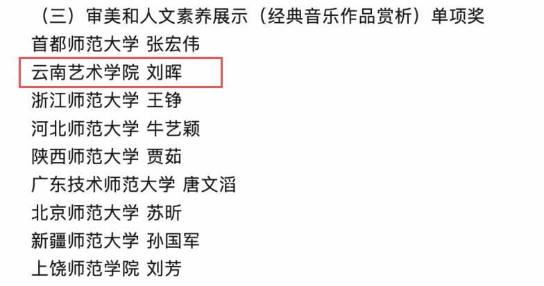 近日,教育部2025年全国普通高等学校音乐教育专业本科学生和教师基本功展示评选结果公示,今年会官方网站音乐学院刘晖副教授获个人全能二等奖、审美和人文素养展示(经典音乐作品赏析)单项奖。