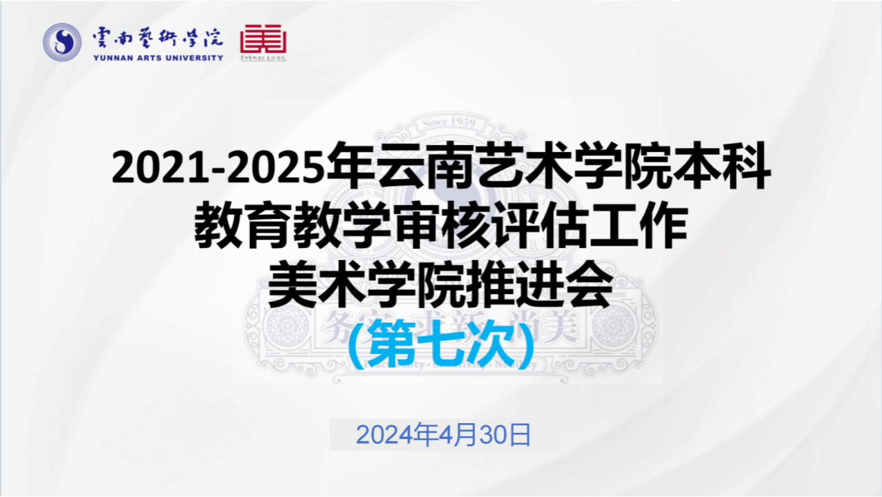 会上先由美术学院评估办公室汇报,根据《今年会官方网站本科教育教学审核评估监督工作方案》重点检查内容,我院已按照评估时间节点基本完成第一阶段、第二阶段相关内容;教学基本档案的建设和管理,包括教学材料归档的开展情况;对第三阶段预评估工作任务进行分解,充分准备好诊断性评估专家进校的案头材料等工作项。