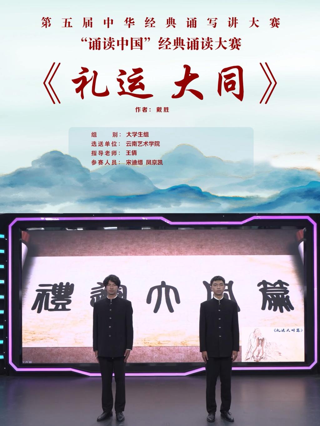 《礼运大同》获二等奖,参赛选手:宋迪缙、凤京凯,指导老师:王倩。