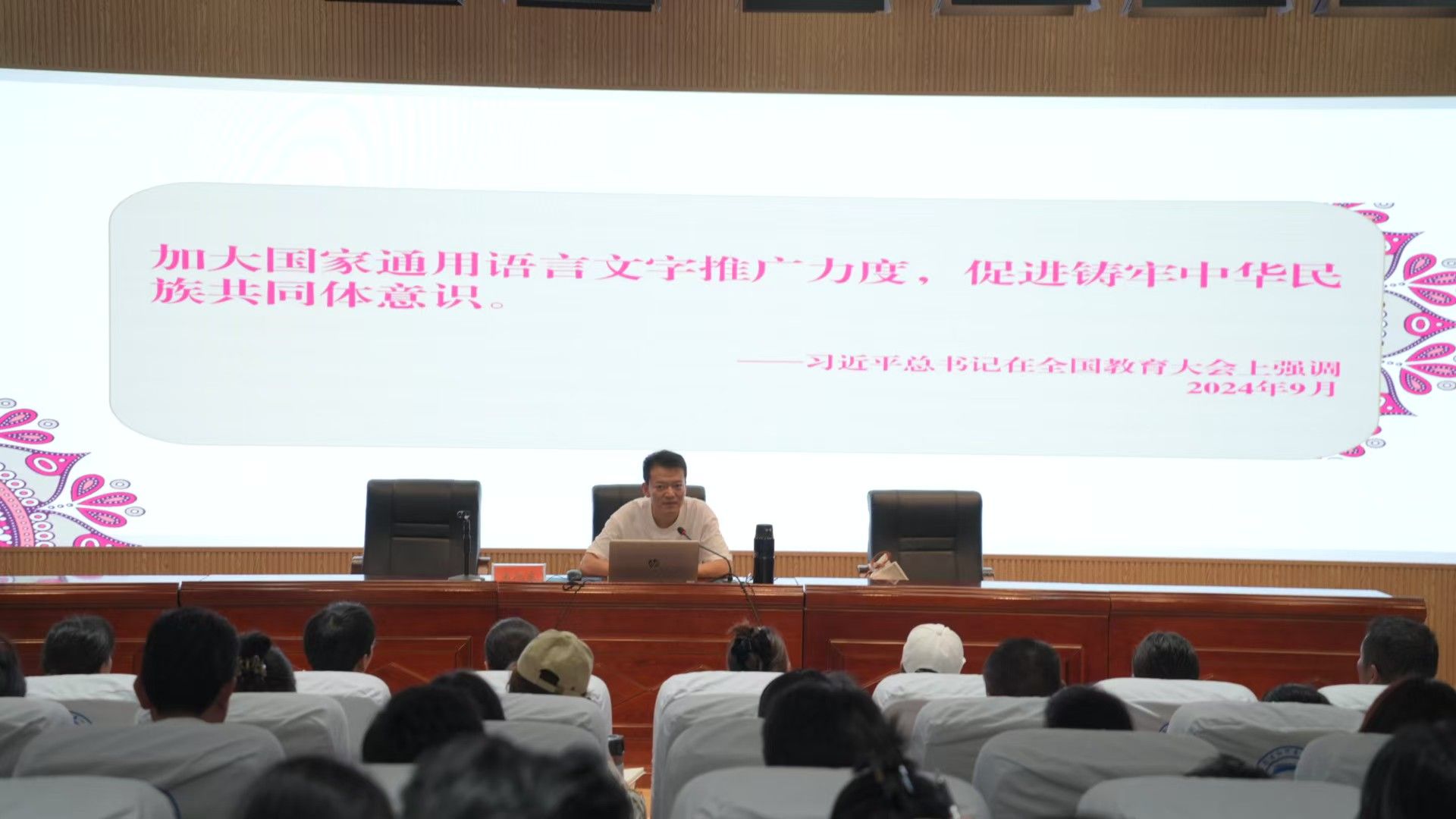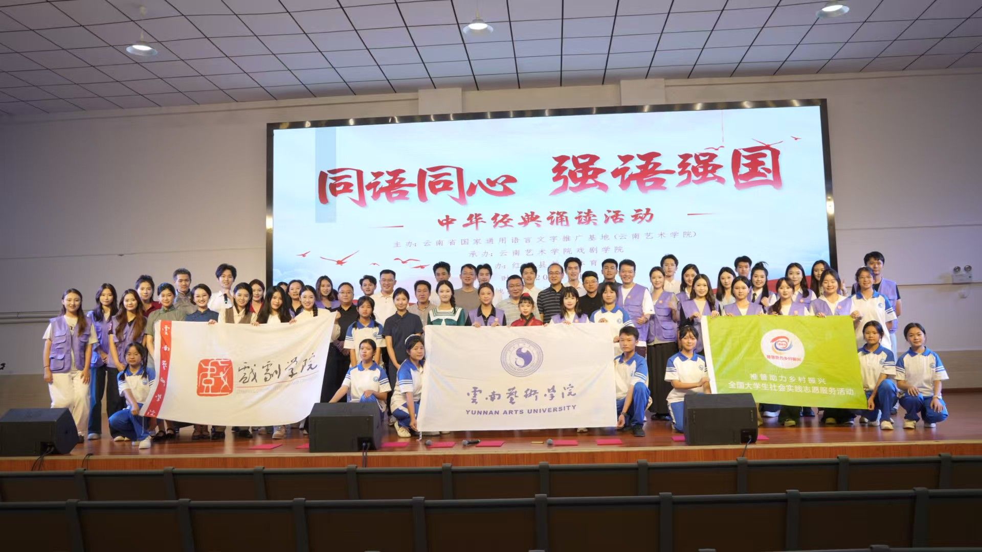 为进一步贯彻落实全国教育大会习近平总书记要求,加大国家通用语言文字推广力度,促进铸牢中华民族共同体意识,提升红河县中小学师生的普通话应用能力与语言文化素养,依托“美育浸润行动计划”资源优势,我院于2025年10月17日——18日由党委委员、副院长郎启训带队,40余名师生赴红河县开展“一场讲座、一堂公开课、一场有声语言艺术展演”的“三个一”推普系列活动,为当地师生带来了一场兼具专业性与趣味性的语言文化盛宴。