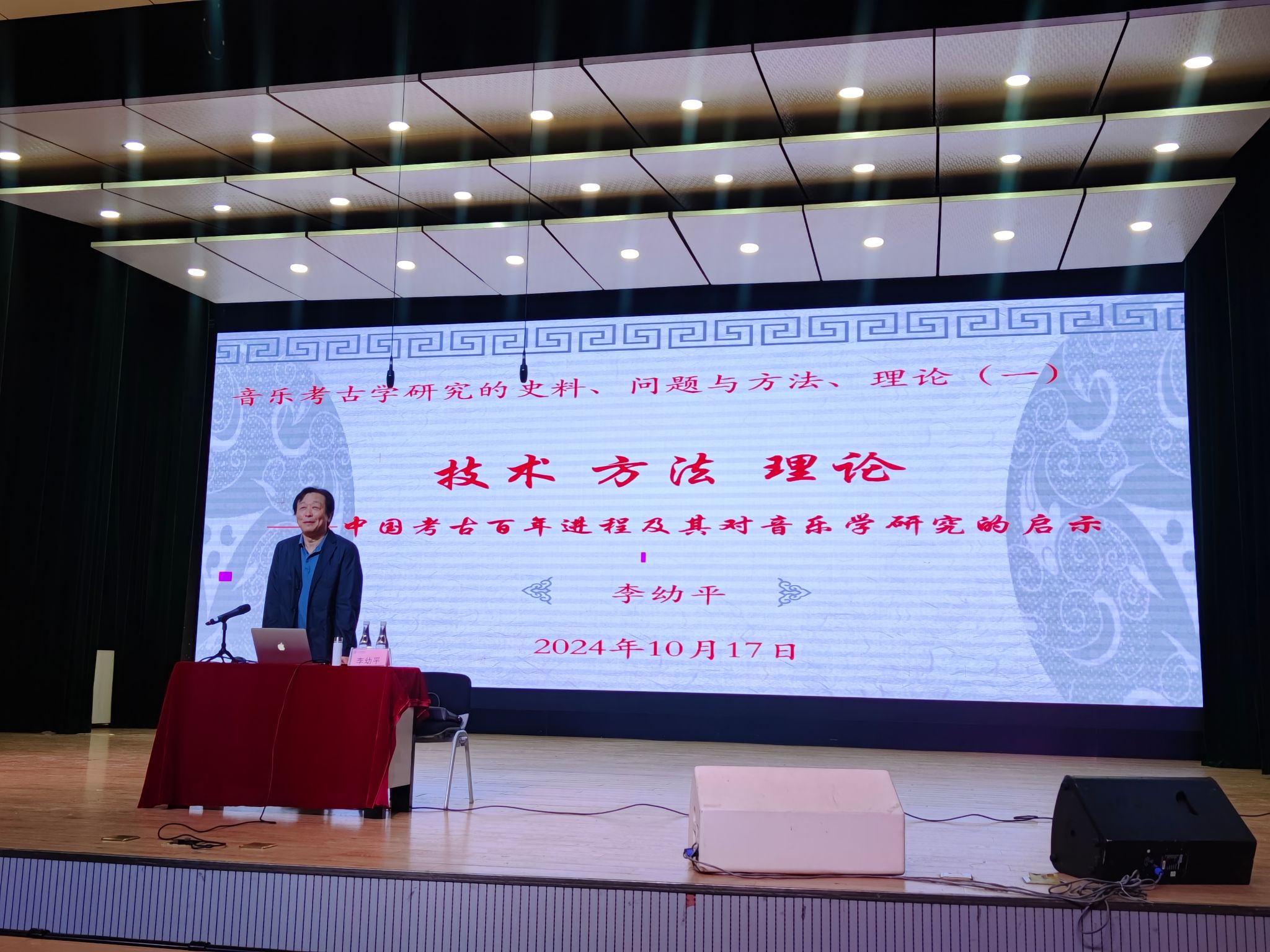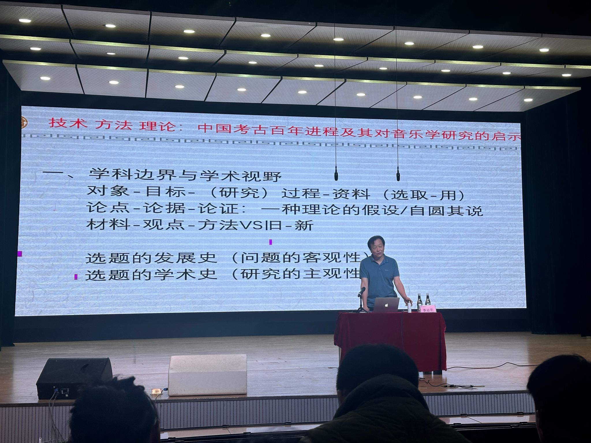 李幼平教授以中国考古百年的历史进程为切入点,叙述了从传统史学到考古学、音乐学的发展历程,引出音乐学研究在技术实践、方法运用、理论架构等方面的重要性,强调证明、纠正、补充、创写四个步骤在学术实践中的必要性。
