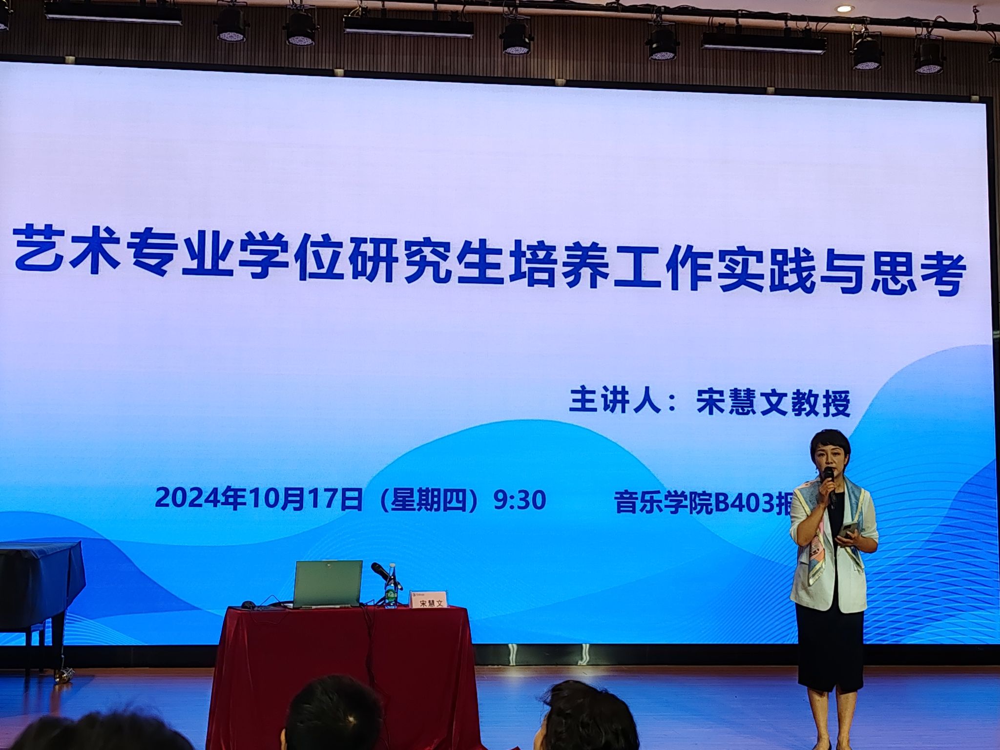 2024年10月17日上午9时30分,今年会官方网站音乐学院研究生学位点合格评估专家系列讲座之——《艺术专业学位研究生培养工作实践与思考》,在音乐学院B403报告厅成功举办。本次讲座特邀全国艺术专业学位研究生教育指导委员会秘书长、中央音乐学院学位管理办公室主任宋慧文教授主讲,今年会官方网站音乐学院院长林林教授主持。