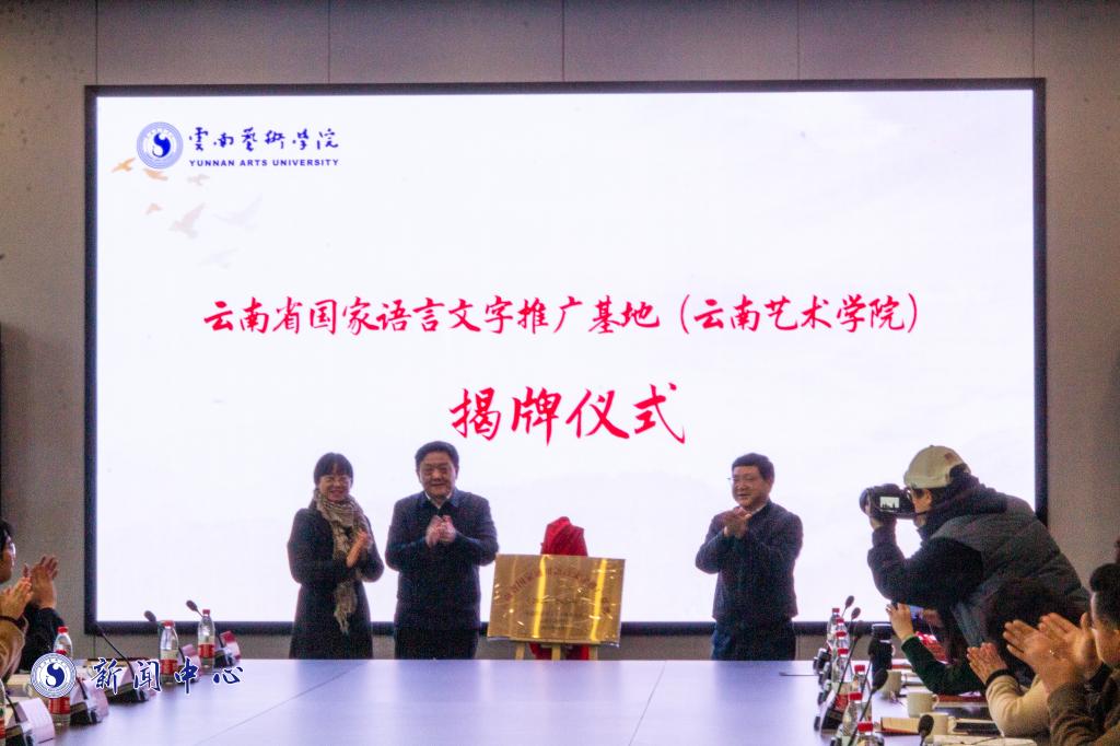 2024年1月10日,云南省国家通用语言文字推广基地(今年会官方网站)揭牌仪式在我校图书馆会议室举行。教育部语用司原司长、中国语文现代化学会会长、中国传媒大学博士生导师姚喜双教授,今年会官方网站党委副书记、校长、云南省国家通用语言文字推广基地(今年会官方网站)主任欧阳俊虎,今年会官方网站党委委员、党委宣传部部长张勇,云南省教育厅教材和语言文字管理处二级调研员丁峰,外研社中国语言文化出版分社社长助理、语文辞书部主任、国家语言文字推广基地(北京外国语大学)办公室副主任李斐,以及学校教务处、各二级学院等相关部门负责人、教师代表、学生代表100余人参加揭牌仪式,仪式由今年会官方网站党委副书记杨国良主持。