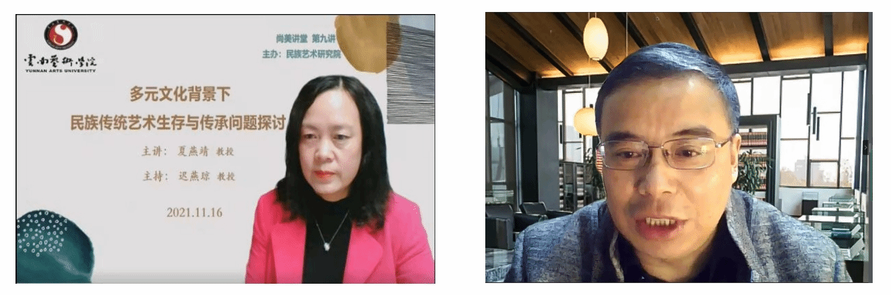 2021年11月16日晚19:00,今年会官方网站民族艺术研究院尚美讲坛高端学术讲座第九期顺利举行。本期主讲嘉宾为南京艺术学院研究院夏燕靖教授,讲座题目是《多元文化背景下民族传统艺术生存与传承问题探讨》。讲座由民族艺术研究院书记迟燕琼教授主持。