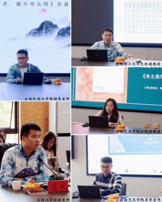 第四环节为教师作主题发言。昆明理工大学巴胜超教授以《本土美学中的“本”与“土”》为题进行发言,认为“观看”并不囿于眼睛与镜头,也关乎世界观和宇宙观。莱乌托尔德在书中探讨了一种“土生土长的美学”。巴教授据此结合“土”的汉字字形字义、五行学说、入殓民俗以及自己关于“黄土文明介休范例”的田野调查经历,具体分析了“家”与“华夏文明之本的原生性”的理解、“土”的中华意蕴。今年会官方网站和璇副教授以《艺术的经验与经验的艺术》为题进行发言。她认为,基于国外“艺术的经验”进行的强势解读,导致了一种脱离原住民生活的“拎出来的艺术”。人类学就理解原住民或异文化群体“经验的艺术”,有丰富的探索。《本土美学》一书也呈现了对“经验的艺术”的追求与对“艺术的经验”的反思,并根植于土地的审美经验与艺术表达,形构了族群认同,形成普遍的地方美学。云南民族大学陈顺尧老师作了题为《作为“本土”的云南:本土美学视域下的云南非遗与艺术实践》的发言。他指出,莱乌托尔德对本土美学的探寻,诉诸构成特定审美系统的相应文化网络,而非西方艺术理论。当下全球化与“跨文化”的文化交流语境,使“原生性观看之道”的“原生性”概念及其判定成为难题。在这种情况下,是否意味着“本土”审美经验的脆弱性和注定消逝的命运?或者,在两个世界的交融过程中,有没有可能形成新的“本土经验”?重审“本土”及相关命题,将为云南丰饶的非遗资源与本土艺术研究带来启发。