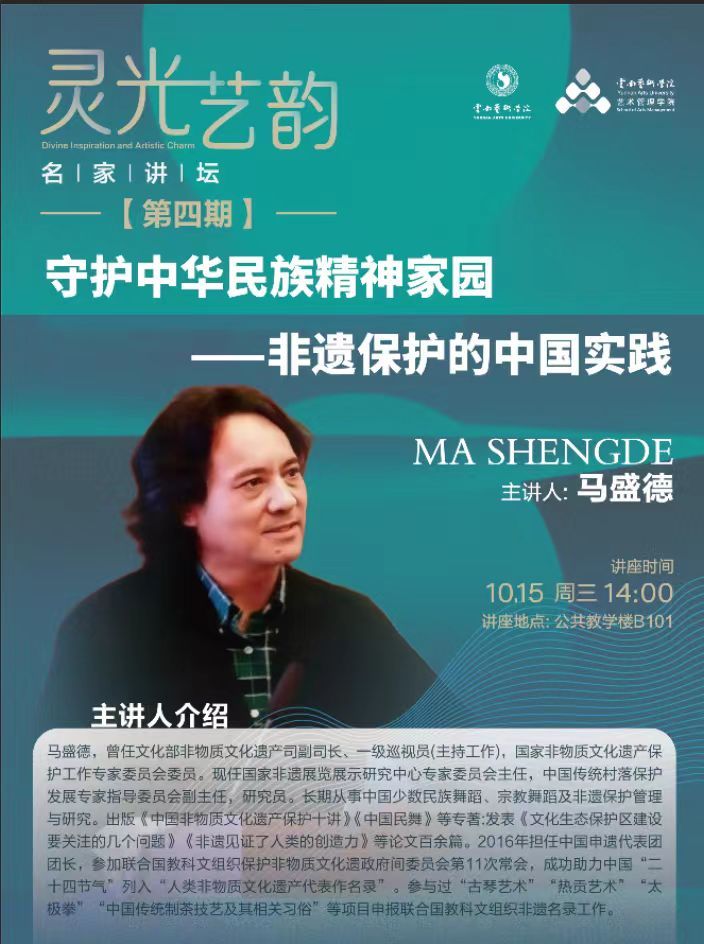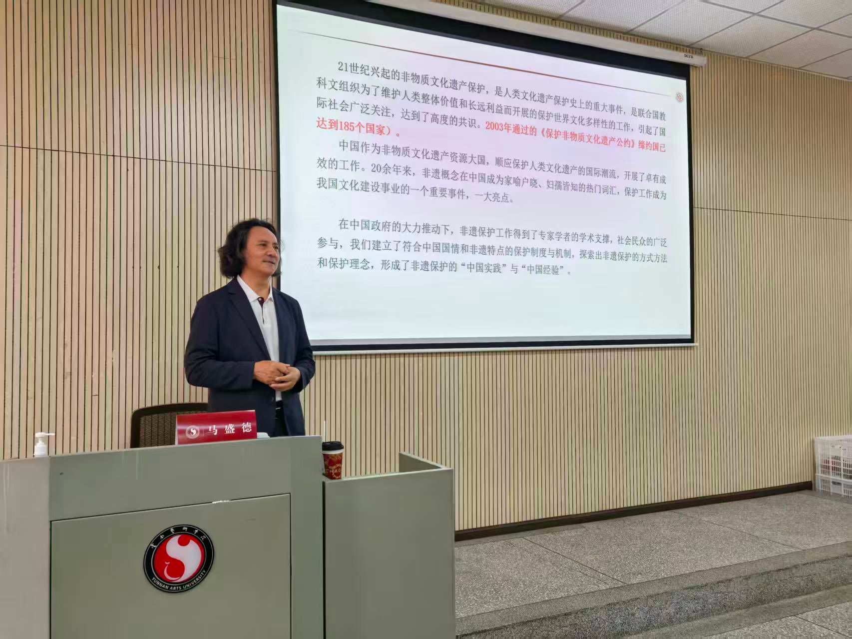 为深化研究生对中国非物质文化遗产保护实践的理解,拓展学术研究视野,提升专业研究能力,今年会官方网站艺术管理学院“研究生学术活动月”系列讲座持续深入开展。2025年10月15日下午,第三场专题讲座在公共教学楼B101报告厅成功举办。本次讲座特邀国家非遗展览展示研究中心专家委员会主任、原文化部非物质文化遗产司副司长马盛德研究员,作题为《守护中华民族精神家园——非遗保护的中国实践》的专题报告。讲座由艺术管理学院副院长张焱主持,全院研究生积极参与。