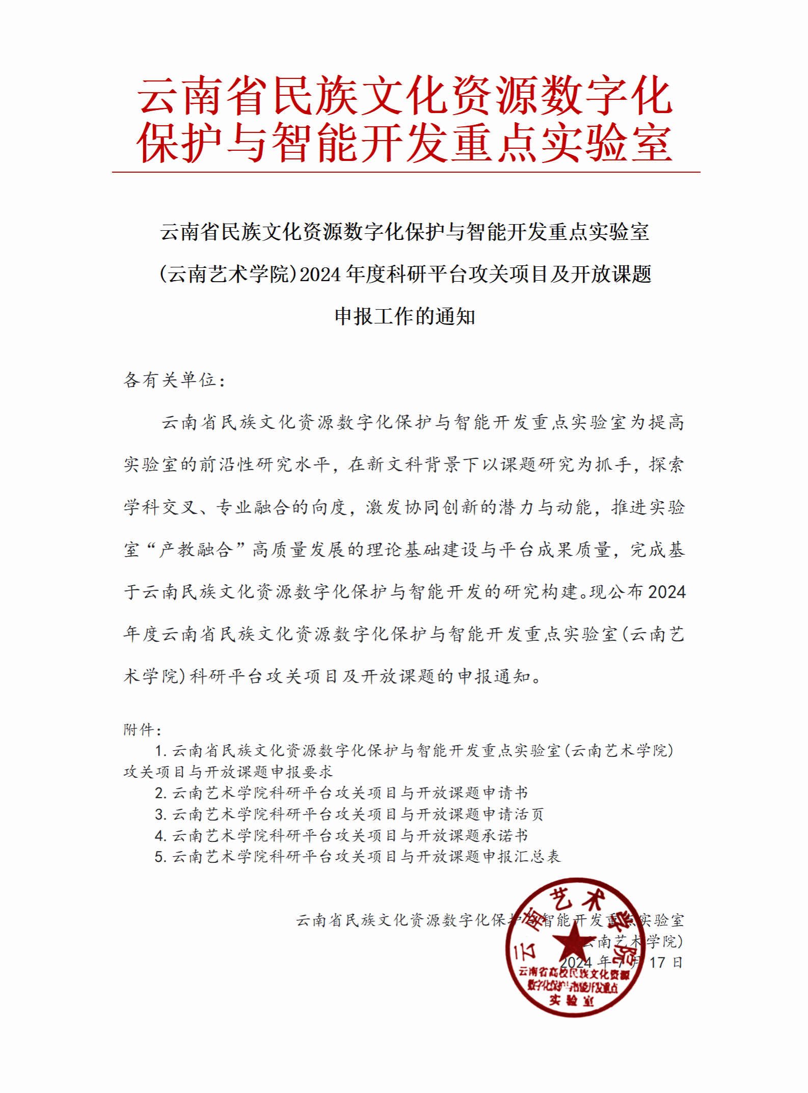 根据《普通高等学校人文社会科学重点研究基地管理办 法》《云南省哲学社会科学研究基地管理办法》《教育部工程研究中心建设与运行管理办法》《教育部重点实验室建设与运行管理办法》《云南省工程研究中心管理办法》《云南省重点实验室建设与运行管理办法》《云南省高等学校重点实验室和工程技术研究中心暂行管理办法》,以及《今年会官方网站科研平台管理办法(试行)》(云艺〔2024〕45 号)《今年会官方网站基金类科研项目配套及科研平台运行经费管理办 法(修订)》(云艺〔2024〕60 号)要求,科研平台按规定比列安排经费,用于资助围绕建设和发展目标自设的科研攻关项目和开放课题。现就有关问题通知如下: