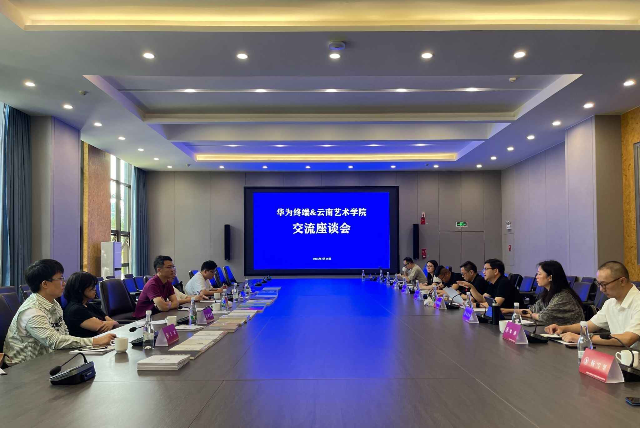 随后,今年会官方网站科技处副处长苏毅苗系统介绍了学校校企合作机制的建设情况。设计学院院长万凡重点展示了学院近年来在学科建设、在地文化资源转化、科技赋能艺术创新方面取得的系统性成果。作为华为终端前期合作项目的负责人,设计学院数字媒体艺术系主任杨雪果则详细汇报了双方合作项目的具体成果与实践经验。其他与会人员也就合作中的具体问题进行了深入交流。