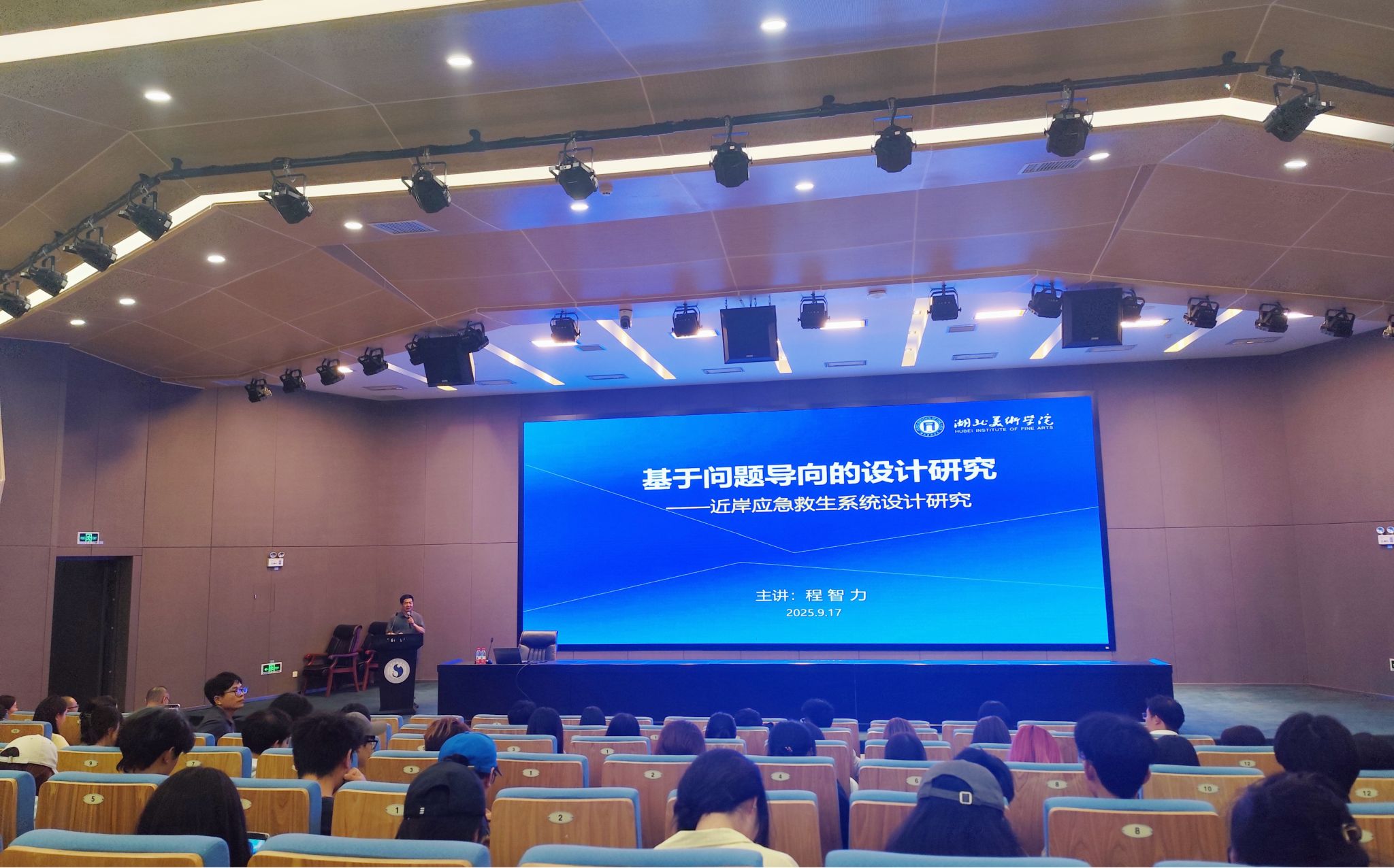 设计的本质在于创造,设计的价值在于解决实际问题。2025年9月18日,湖北美术学院党委常委、副校长程智力教授以“基于问题导向的设计研究——近岸应急救生系统设计研究”为题,为全院师生带来了一场学术盛宴。本次讲座由设计学院副院长邹洲教授主持,设计学院师生共同参加。