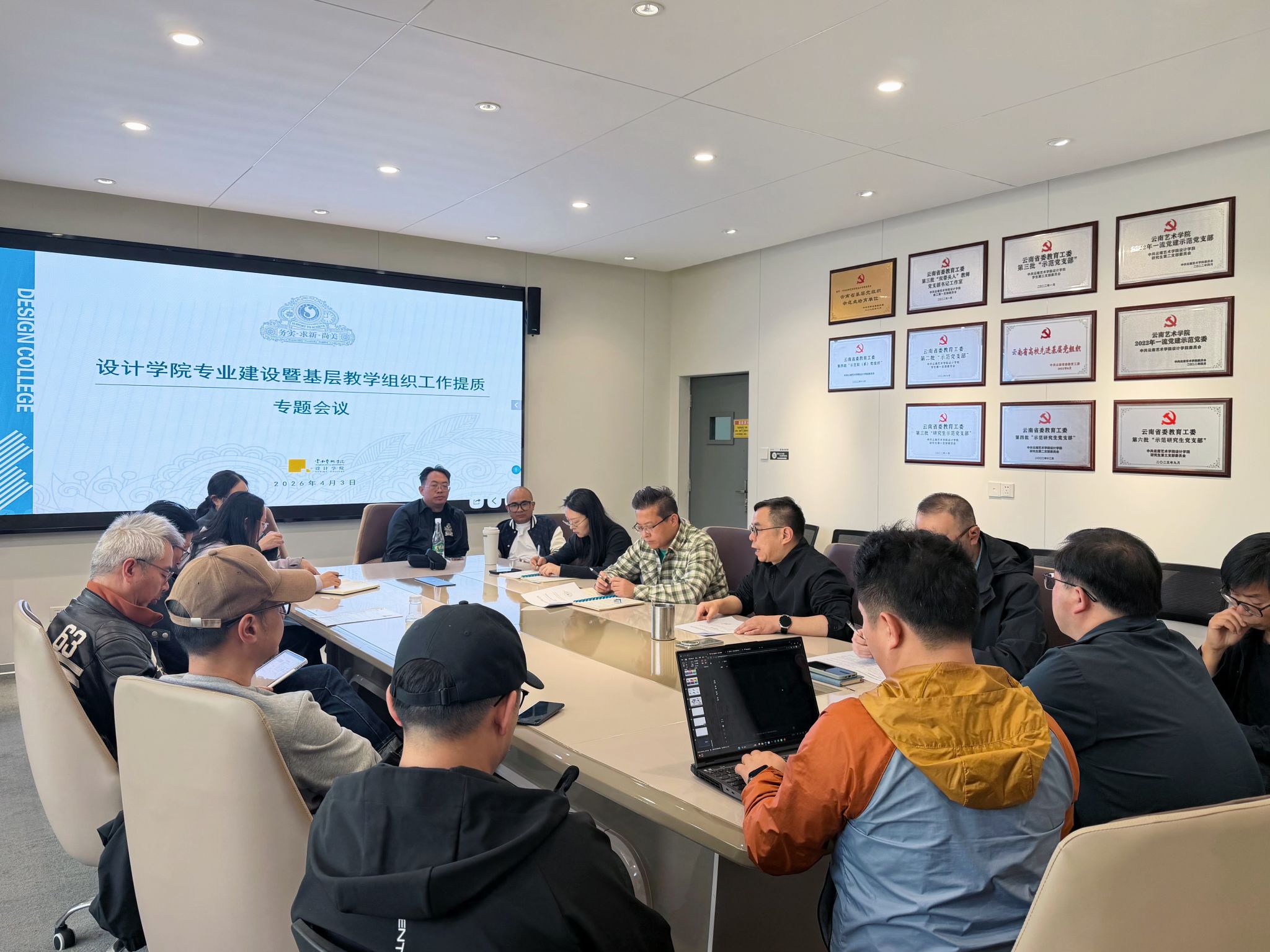 为进一步推动学院专业建设高质量发展,夯实基层教学组织工作根基,2026 年 4 月 3 日,设计学院召开专业建设暨基层教学组织工作提质专题会议。设计学院党政领导班子成员,各专业负责人、系部主任参加会议。
