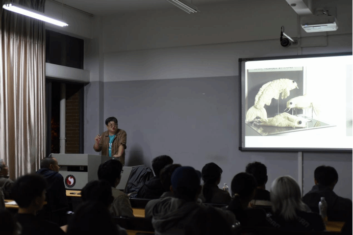 第一场讲座从徐戈老师个案研究开始,徐老师长期致力于研究机械的运动往复及其模拟生命的机制,以及跨越物理空间与数字虚拟空间边界的创作表达,将艺术造型、电子控制、机械传动在艺术作品中有机融合,形成独特个人风格。