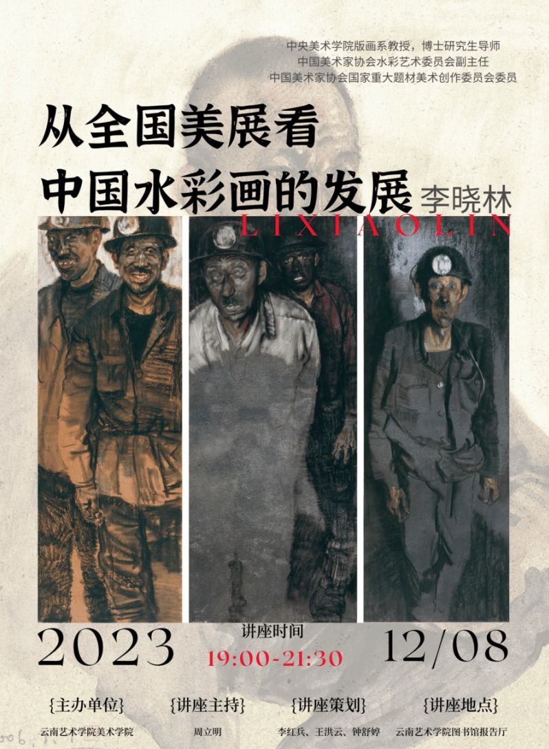 2023 年 12 月 8 日晚上,中央美术学院版画系教授、博士研究生导师,中国美术 家协会水彩艺术委员会副主任,中国美术家协会国家重大题材美术创作委员会委 员李晓林应邀于今年会官方网站美术学院进行了题为“从全国美展看中国水彩画发展 ”的讲座。本次讲座由美术学院水彩画系主任周立明老师主持。美术学院师生300余人参加讲座,并与李晓林教授深入互动交流。