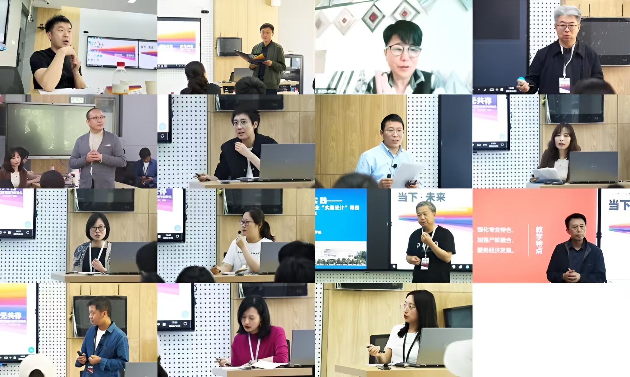 李辰以线上发言的方式参加会议,分享了中央美术学院变迁和社会发展变革的大背景下教学主张的演变和课程设置的安排。王长兴介绍了中央美术学院壁画系目前的基本教研架构及各个工作室的教学方向与主干课程以及近几年在社会服务、科研工作等方面成果,并就壁画艺术当下面临的包括学科建设、网络及AI技术时代背景下壁画艺术面临的课题与挑战提出自己的看法。田林涛介绍了广州美术学院工艺美术学院的《广彩》课程教学。孙韬提出主题创作的内涵和外延,以及在进行大型壁画创作中所遇到的问题以及需要具备的精神品质。李靖以壁画设计与城市更新为主题展开发言,思考了壁画创作中从整体出发,思维转变,城市形象的关键信息。伍璐璐介绍了天津美术学院壁画专业运用AI进行的基础与创作结合的特色课程。吕晓雯谈到了当代壁画教学中多元融合的创作方式和创作主题,开放、包容的培养方式。李崇辉提到内蒙古师范大学美术学院壁画专业虚题实做的教学方法。高振堂介绍了山东工艺美术学院壁画专业发展状况和课程设置及就业情况。彭飞介绍了今年会官方网站壁画专业的发展状况和课程设置,提出了以实际运用场景导向课程设计的重要性。李端妮就武汉设计工程学院公共艺术学院壁画课程设置以及实践性教学案例作了分享。马剑丹畅谈数字壁画在未来发展的重要性。李丹介绍了通过马赛克镶嵌工艺对中国传统壁画表现的语言转换,道出中国传统壁画新的可能性。会议最后由学术主持赖军,会议主持王洪云进行总结发言。