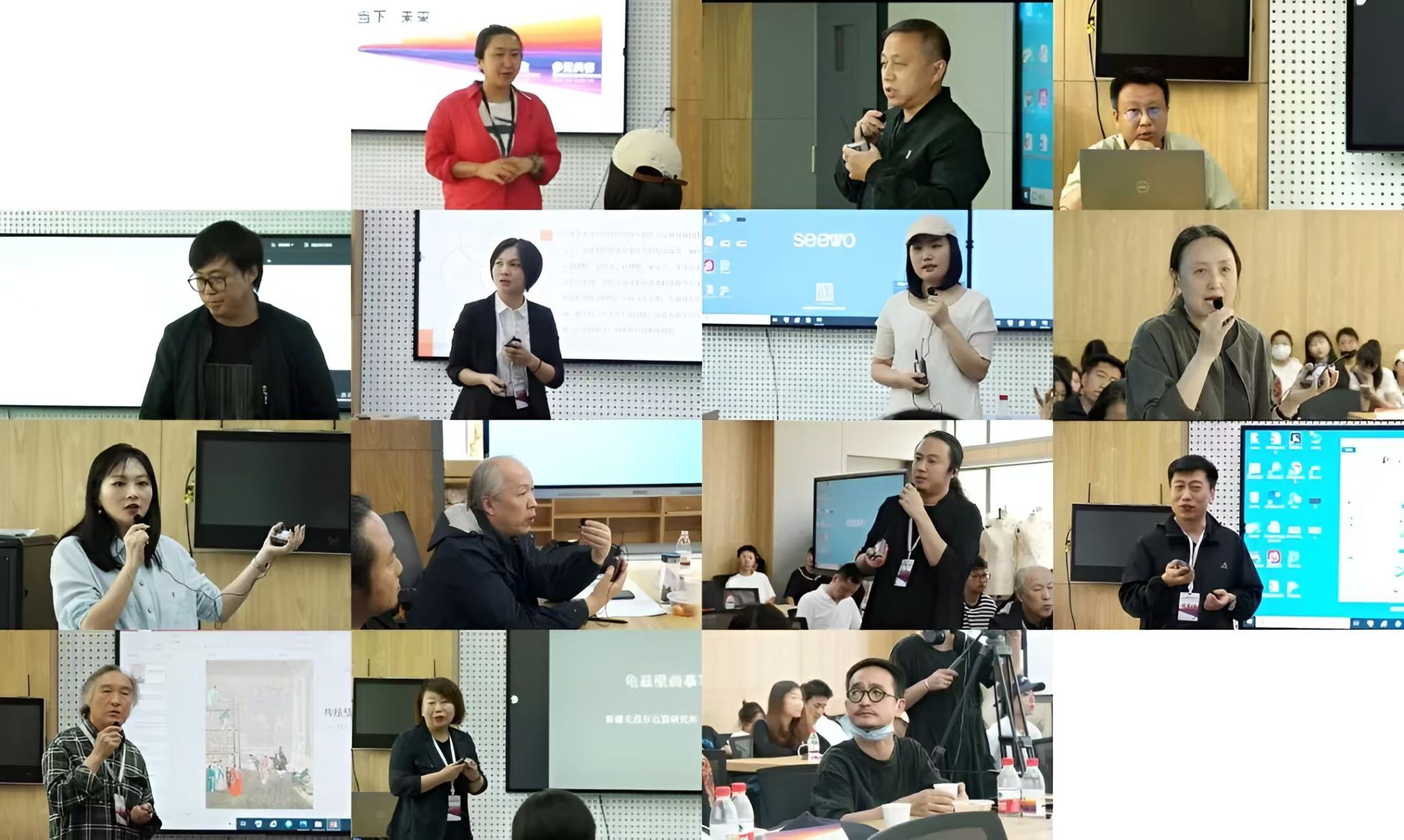 董卓分享了中国传统壁画语言在造型学科实践性教学的特点。李晴以城市公共空间的壁画创作教学为题,介绍天津美术学院的教学情况。向颖介绍了南京艺术学院特色课程《壁画设计》的课程教学思路。赵丽娅指出中国作为文化大国,现代教学一定要从历史的角度对传统进行系统梳理与研究,以完整的历史背景和丰厚的文化内涵,来启发同学进行学习或创作。王继伟分享了今年会官方网站从采风到创作的教学思考。李岩详细介绍了广西艺术学院壁画教学成果与实践探索。贺亮分享了他对材料教学进行的深度思考,突出实验与创新的重要性。罗海英介绍了广州美术学院的整体情况以及马赛克镶嵌在公共空间的教学运用。冯志杰通过传统壁画材料技法应用的讲解,分享了内蒙古师范大学的教学情况。王岩松从传统壁画的本体材料与技艺的角度,介绍与分析古代壁画中壁质结构和绘制工法等民间绘画系统的壁画艺术生产模式。叶倩分享了湖北美术学院壁画系专业建设与改革思路。张映辉介绍了山东艺术学院壁画专业的课程建设会议最后由学术主持朱俊,会议主持刘珣进行总结发言。