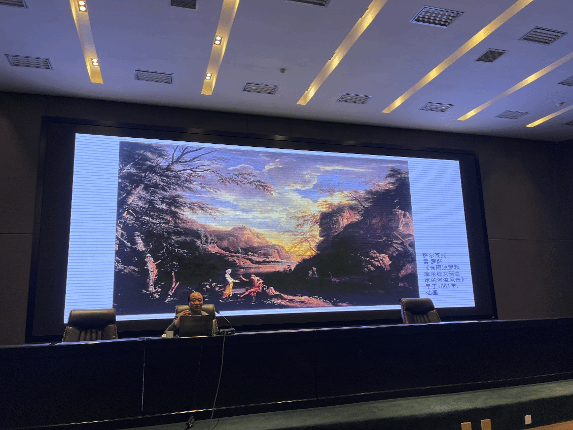 周刚教授以专业和学术的角度给现场的老师和同学们讲述了什么是绘画的形, 绘画的形是如何产生的, 绘画的形与美。结合艺术史上的大师基弗尔、萨尔瓦托雷·罗萨、富朗索瓦·布歇、尼古拉·普桑、马克思·贝克曼、阿图罗苏托等的作品具体分析了绘画中的形与美。