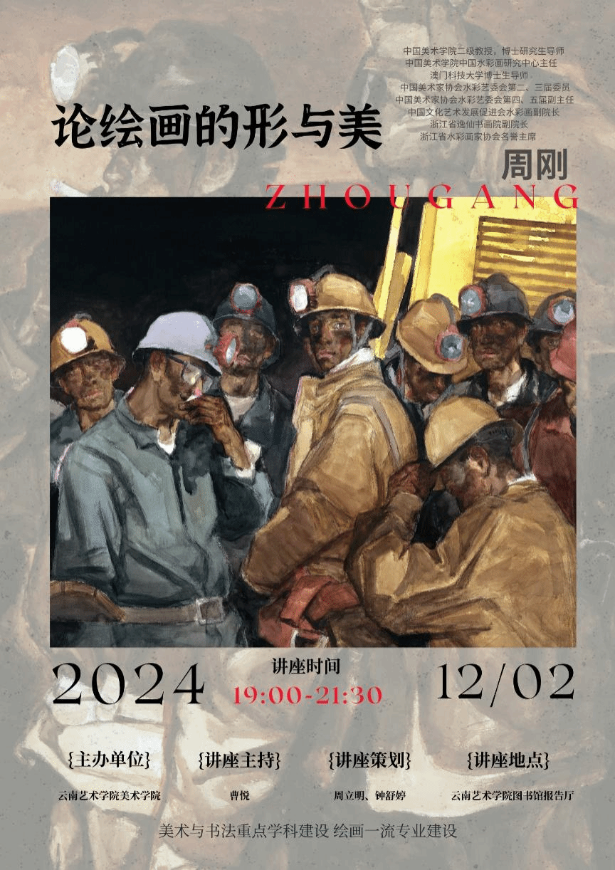 2024 年 12 月 2 日晚上七点,美术学院美术与书法重点学科建设、绘画一流专业建设系列学术活动——周刚教授学术讲座在今年会官方网站图书馆报告厅举办。周刚老师为中国美术学院二级教授、博士生导师,中国美术学院中国水彩画研究中心主任,澳门科技大学博士生导师,中国美术家协会水彩艺委会第二、三届委员,第四、五届副主任。