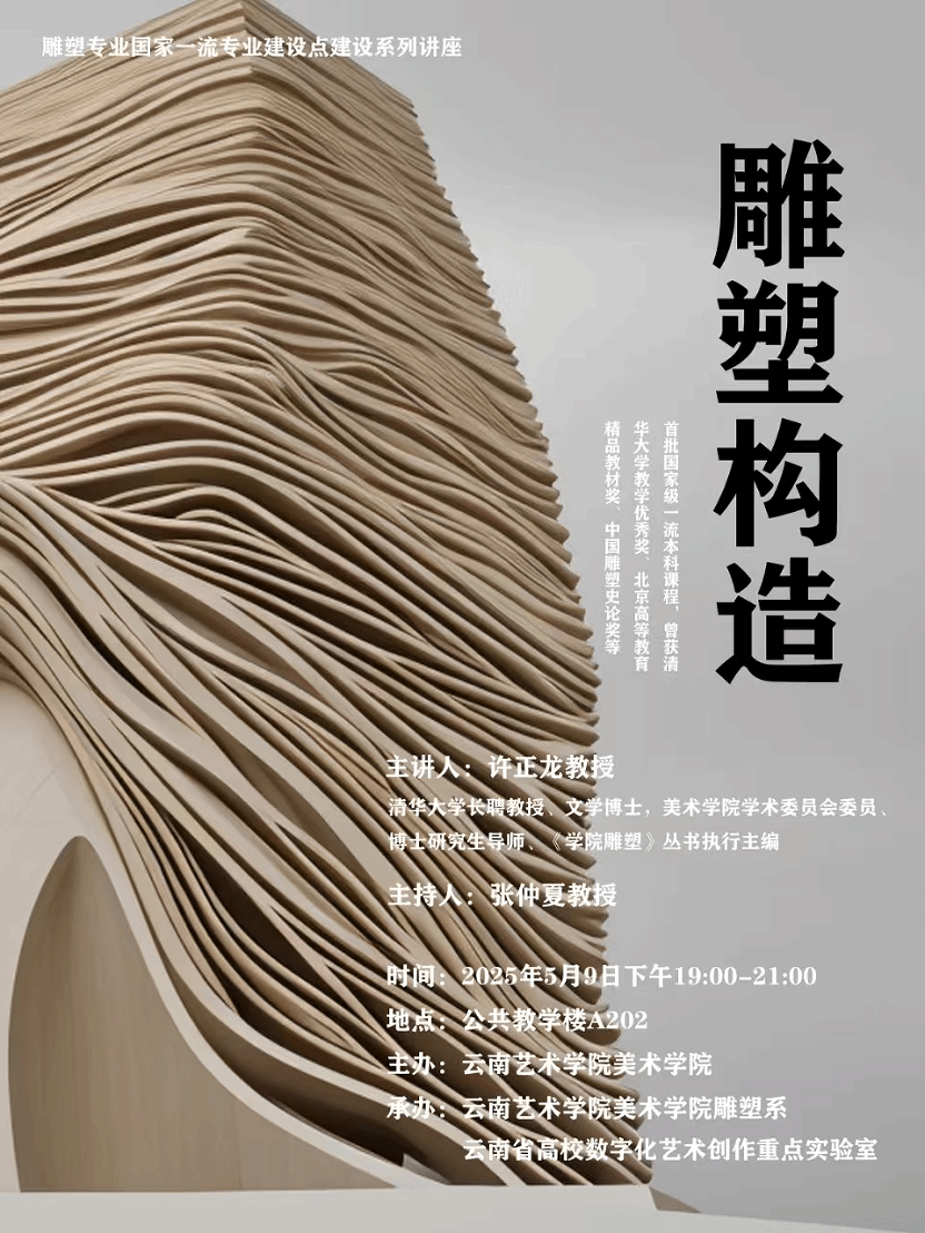 为推进美术学院雕塑专业国家一流专业建设,2025年5月9日雕塑系邀请清华大学美术学院许正龙教授来校,举办题为《雕塑构造》讲座。