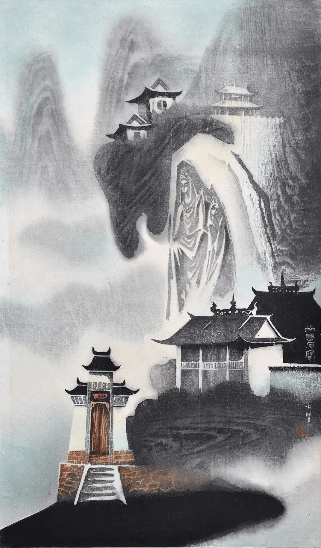 《南国石宝》 72×43cm 水印木刻 叶公贤 1980