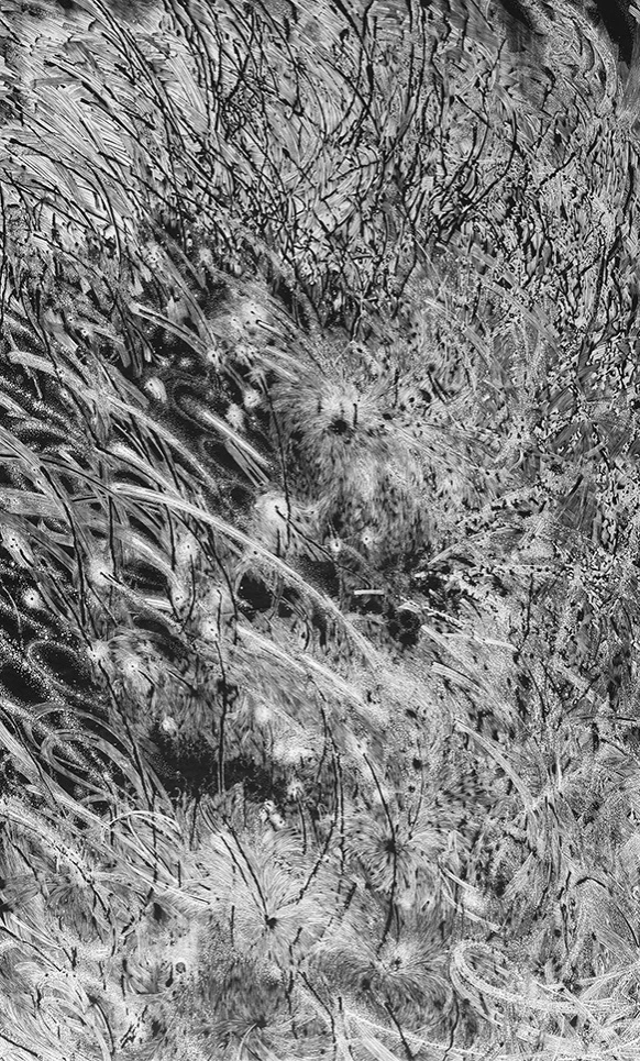 《花光焰火》 150×90cm 黑白木刻 王晨橙 2024