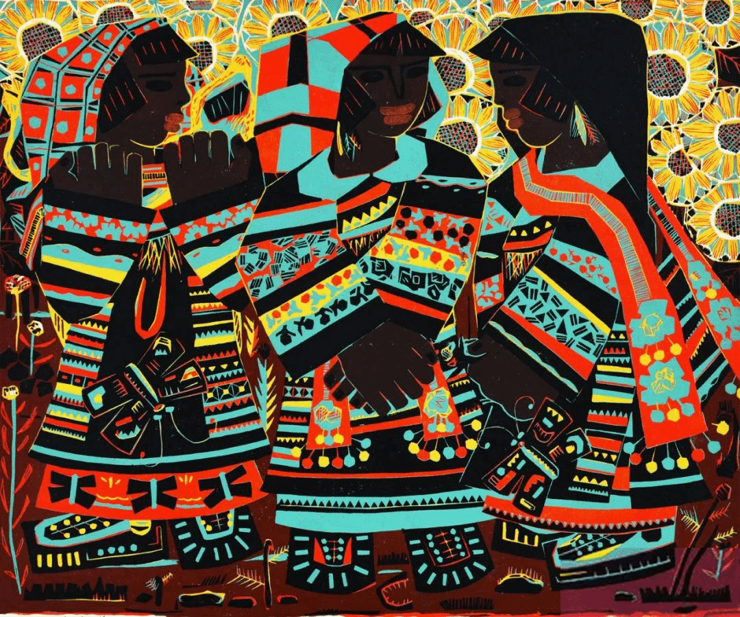 《拉祜风情-染》 57×70cm 绝版套色木刻 郑旭 1984