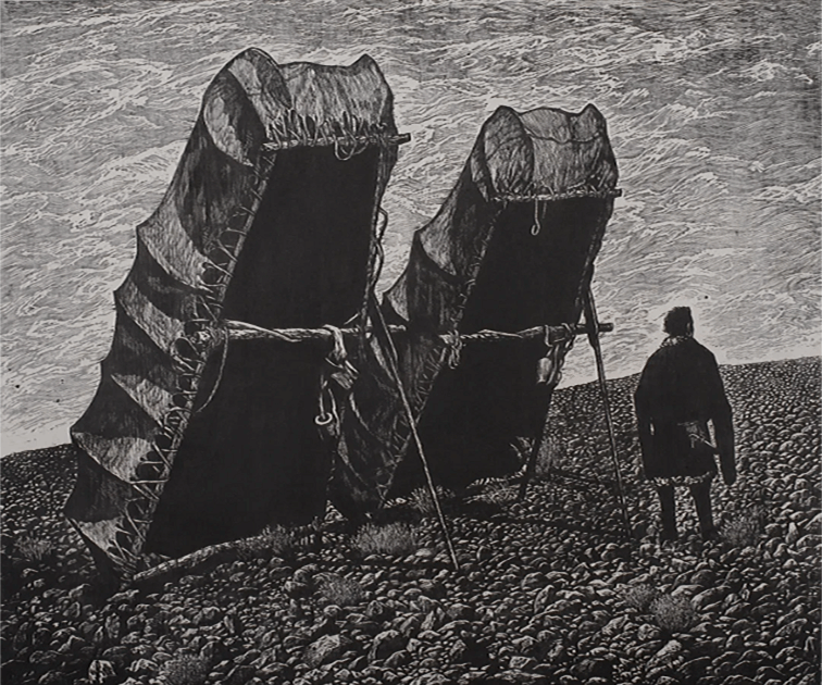 《停滞的风》 86×98cm 水印木刻 李斌 2018
