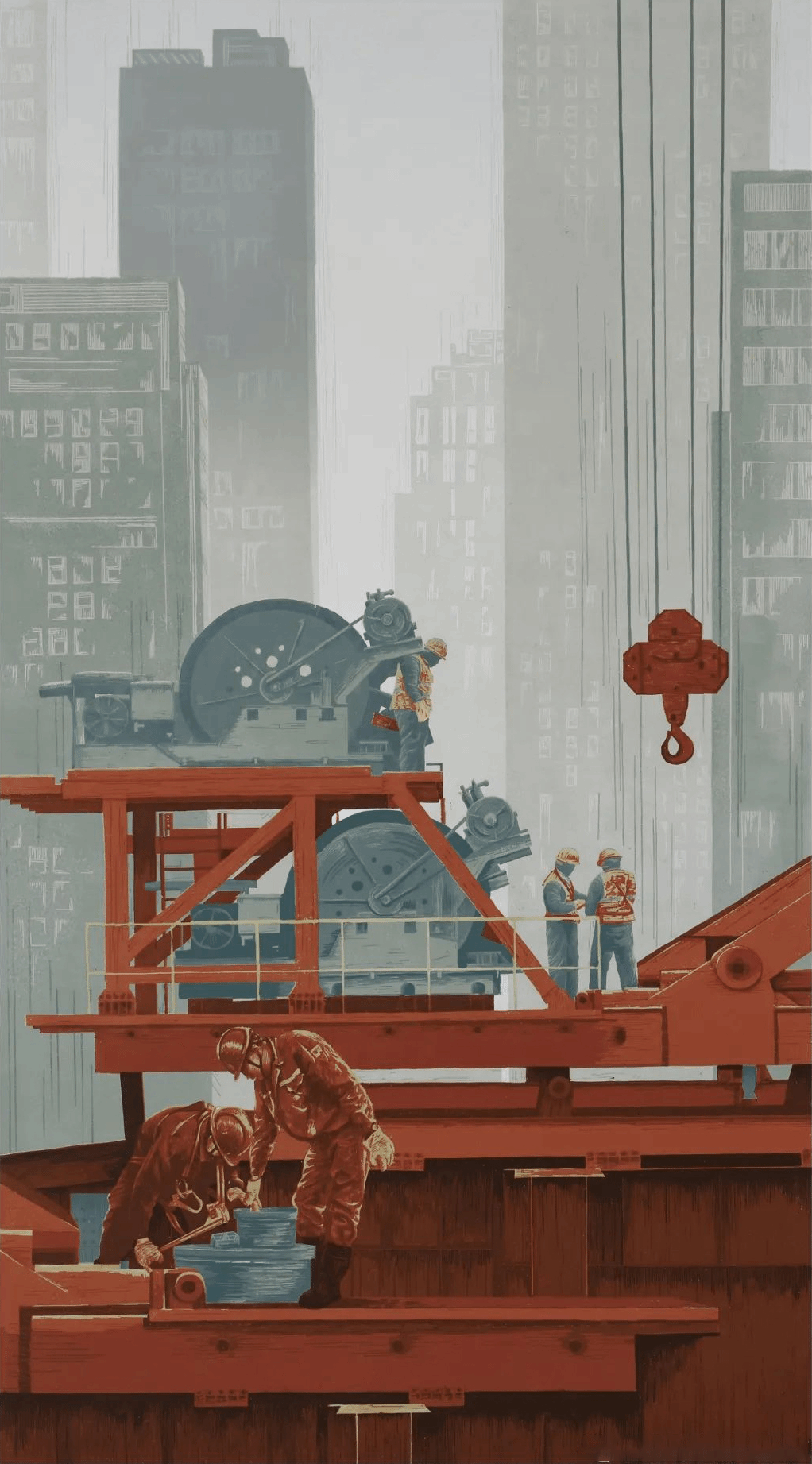 《为逐梦而筑梦》120×65cm 绝版套色木刻 陈余洋 陈国庆2024