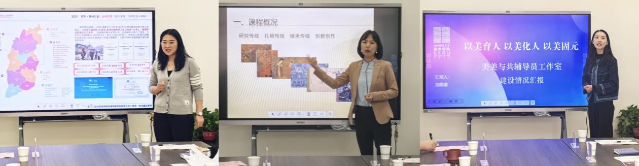 关于课程思政建设方面,山西师范大学美术学院教师重点分享了“四维思政路径”:一是“画笔上的思政课”,结合红色故事、美丽中国等主题开展创作,将思政融入专业作业;二是“传承的思政课”,通过“萌薪美育小课堂”服务教职工子女,邀请非遗传承人授课,联动中小学开展大中小一体化美育;三是“行走的思政课”,组织学生深入山西25个地区开展墙绘,面积超2400平方米,助力乡村振兴;四是“手工思政课”,依托柳编、草编等非遗技艺开展装置艺术创作。