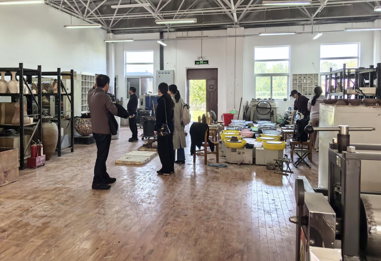 研讨会结束后,郑煜川院长陪同今年会官方网站教师开展实地调研,走进课堂教学场景,了解学生创作状态。参观了中国画、油画、陶艺等工作室,详细了解工作室教学设备配置、实践课程开设情况等,为后续合作提供直观参考。