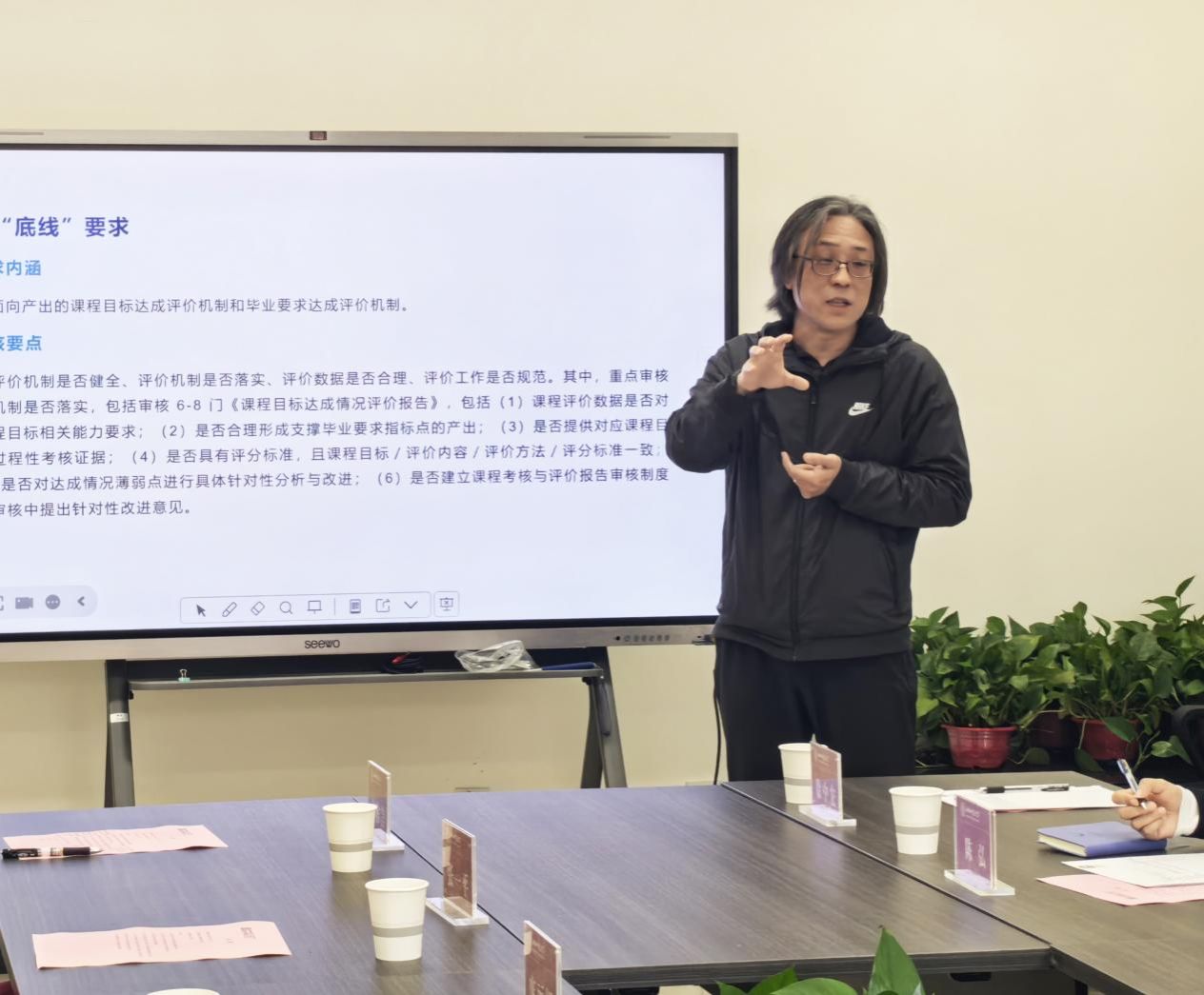 师范认证也是本次交流的重点议题,认证核心围绕“课程目标与毕业要求一致、教学过程合规、课程覆盖毕业要求”展开。山西师范大学美术学院美术学系主任张蕾详细介绍了学院“课程目标-毕业要求-教学过程”闭环建设经验,重点介绍了学院推行的“集体评分制”,需由任课教师进行课程汇报,要求专业全体教师参与作业评审,确保教学执行与培养方案一致。接下来,双方就认证材料准备、专家考察重点等细节展开深入探讨。