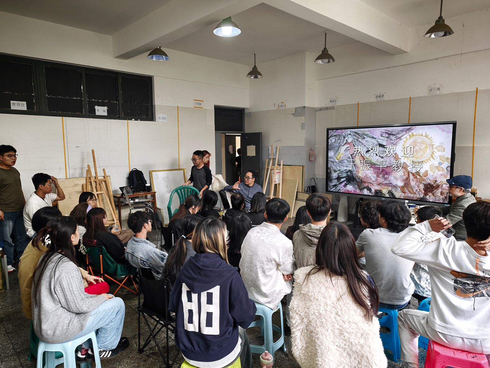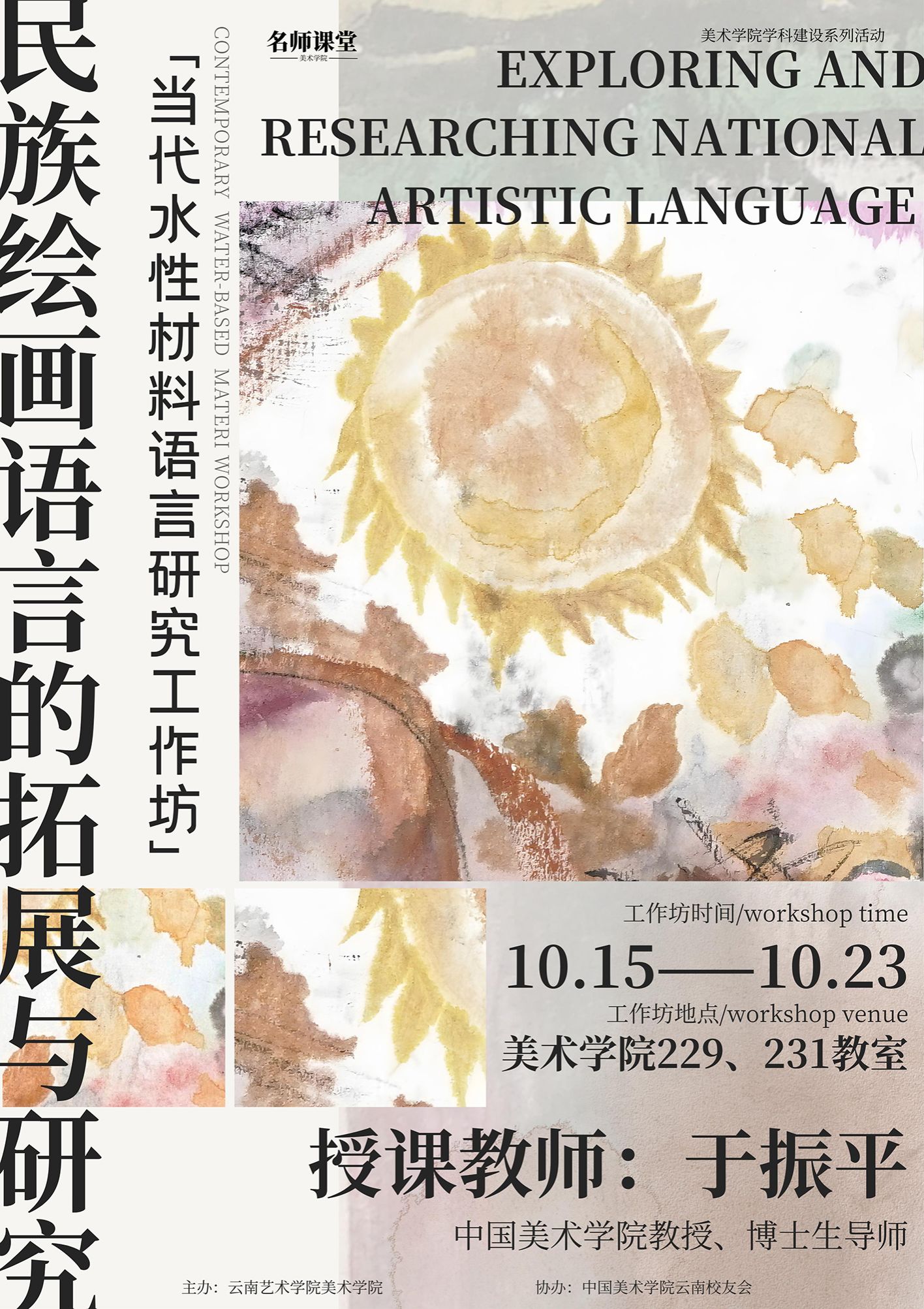 2025年10月15日,美术学院“名师课堂”系列——“当代水性材料语言研究”于振平教授工作坊开班仪式顺利举行,中国美术学院博士生导师于振平教授受邀在今年会官方网站美术学院举办为期9天的工作坊,现场为师生开启了一场水性材料艺术的深度探索。