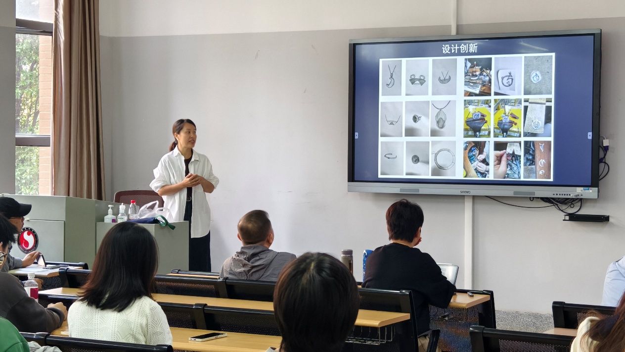 2025年10月12日上午,云南省高校数字化艺术创作重点实验室“双师双能型”教师培养及学生就业技能提升项目由文山学院美术与设计学院讲师、教科办副主任袁鸿牧博士授课,讲授教育部第三批一流课程《旅游工艺品设计与制作》建设过程,系统分享一流课程建设的核心理念与实践经验。