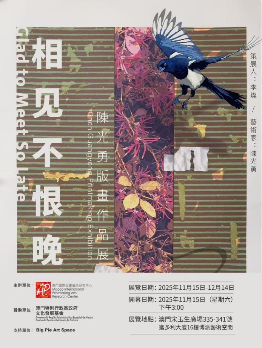 主办的澳门国际版画艺术研究中心 2010 年成立至今,办过 80 余场国际版画活动;此次展览既是陈光勇个人回顾,也是东西方版画、澳门与内地艺术的对话。策展人李灿认为,“相见” 是与时代、历史、自我的对话,陈光勇的艺术不追视觉喧嚣,而是引观者沉心体悟时间与生命。11 月澳门,走进博派艺术空间,在版画肌理中触见时间,这场 23 年艺术之约,相见从不恨晚。