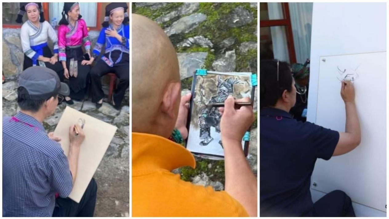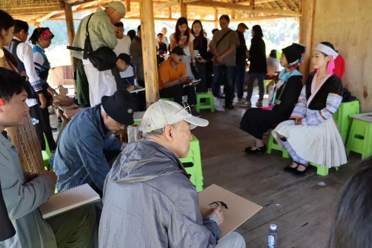 此外,30所艺术院校的90余名师生走进丘北普者黑进行为期5天的民族人物画写生,50余名教师和研究生近距离观摩了来自各大院校画家的创作过程,直观学习其笔墨运用技巧与创作思路,针对自身在“墨色层次把控”“画面构图布局”等方面的问题,获得了针对性指导,深刻体会到“理论指导实践、实践反哺理论”的学术逻辑。