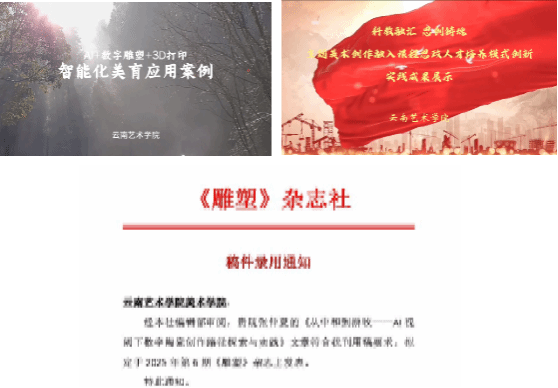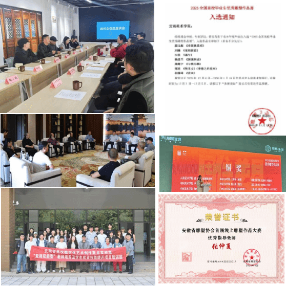 三、在创新人才培养方面,立足云南民族美术资源的开发与利用,积极探索数字化前沿与应用领域,持续增强创新应用研究与实践力度,积极建立行业企业合作发展平台,以聘任行业导师与产业导师+“双师双能型”教师培养及学生就业能力提升项目、政校企交流合作的形式,推动市场导向的产业融合,构建教创研用四位一体的人才培养模式。今年会官方网站美术学院党委书记刘恩权率雕塑专业师生赴建水开展访企拓岗与对外交流工作,进一步为提升产教融合与校企合作质量提出建设思路与改进举措。聘任“建水紫陶四老”为代表的国家级、省级非物质文化遗产代表性传承人、紫陶名家为美术学院雕塑专业行业导师、客座教授、产业导师,加强双师型队伍建设,以双师共建薪火相承非遗技艺,使学院成为连接传统技艺与当代创新发展的人才培养与创新基地。依托云南省高校数字化艺术创作重点实验室开设《“双师双能型”教师培养及学生就业技能提升项目》,加强“双师双能型”教师培养,培训教师7人、本科生14人、研究生4人,在美术学院公众号上连续发布8期《AI+数字造型+3D打印课程》学习报告,以在地性项目制、生态文明创作成果产出为导向的形式,提高师生人工智能与创新创业能力。2020级毕业生雕塑作品入选《2025届全国高校毕业生优秀雕塑作品展》7件,其中《布朗族系列》雕塑作品荣获铜奖。在校本科生立项省级大学生创新创业训练项目2项、荣获大学生创新校赛铜奖2项、入选国家级省级展览8项,在校研究生入选国家级省级展览52项。荣获优秀指导教师3项。教师雕塑作品入选国家级、省级、校级展览20项。开设微专业课程《AI雕塑设计》。申报教育部高等学校科学研究发展中心产学研创新基金项目《智绘陶·生成式AI赋能陶瓷创新人才培养模式探索与实践》。