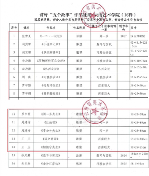 一、在专业课程教学方面,以思政元素与艺术创作融合路径铸牢中华民族共同体意识教育实践价值。通过教学与创作弘扬社会主义核心价值观、中华优秀传统文化、革命文化等思政元素的育人功能,形成专业知识与技能、教育与产出相结合的综合教育教学模式。在云南省美术家协会主办的云南讲好“五个故事”美术书法作品展作品征集中,今年会官方网站入选16件美术作品中14件为雕塑专业作品,充分彰显雕塑专业在云南主题雕塑创作中的创作实力与引领。在美术学院庆祝第41个教师节暨课程思政建设师生雕塑作品展中展出作品50件, 持续推动课程思政育人模式改革。
