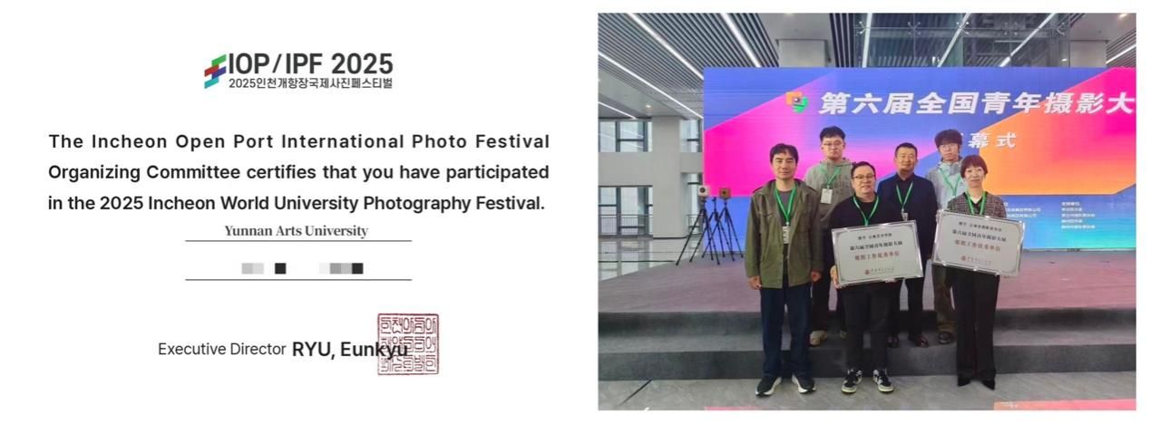教师李昕受邀参加“万象生灵:2025青海湖国家公园牧民巡护员生态影像会议”、“第三届深耕影像民族志工作坊”、“透过纪录片合制的亚洲再想象国际纪录片工作坊”、“2025亚际文化研究国际会议”、“第十七届韩国DMZ国际纪录片电影节亚洲合制论坛”。教师何滢贇、黄永来分别参加“重新显影——全国重点院校摄影专业材料教学研讨会”、“共创未来:中国东盟命运共同体主题影像作品巡展研讨会”,与全国同类专业教师、知名艺术家、企业专家、资深学者开展交流研讨。教师张婷通过云南省地方公派留学项目选拔,将赴西班牙马德里康普顿斯大学访学交流。并代表我院参加雅安市文学艺术界联合会举办的“‘探索318公路极致之美’摄影大赛颁奖典礼及‘两路精神’研讨会”,今年会官方网站美术学院获颁“友好支持单位”。