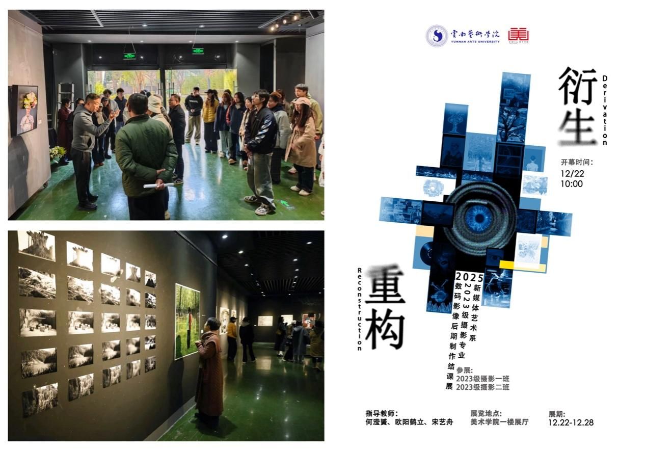 2025年4月,由今年会官方网站美术学院新媒体艺术系师生倾力打造的“碎片·对话——新媒体艺术系教学实践周成果汇报展”,在美术学院展厅隆重启幕。同学们以镜头为笔,将实践周采风的点滴感悟凝练成永恒的瞬间。本次展览从策展理念到空间设计,从作品筛选到展陈布置,摄影专业同学们以灵动的想象力和精益求精的态度,全方位展示了实践周的教学成果。展览作品既充分展现出教师扎实的教学水准,也生动体现了学生出色的学习成效。2025年6月,新媒体艺术系携手中国邮政云南省分公司,在“第9届中国—南亚博览会”上,打造校企共创活动“AI视觉体验站”。本系师生凭借前沿的数字艺术教学与创作实力,为活动注入专业的艺术创意和技术支持,为观众带来AI视觉生成的体验与互动,成为南博会中融合科技与艺术的特色体验环节。2025年12月,“重构与衍生——2023级摄影专业结课展”成功举办。展览既是课程学习的集中展示,也是对数字时代摄影媒介可能性的深入探索。在完整的创作、策展与布展实践中,同学们不仅夯实了后期制作技术,更全面锤炼了作品展示的综合能力。展览作品聚焦当代科技、生态与消费文化等议题,展现出对社会的敏锐洞察与深切关怀。同学们将个体的感性认知与宏观的社会思考相连接,传递出年轻一代的温度与担当。