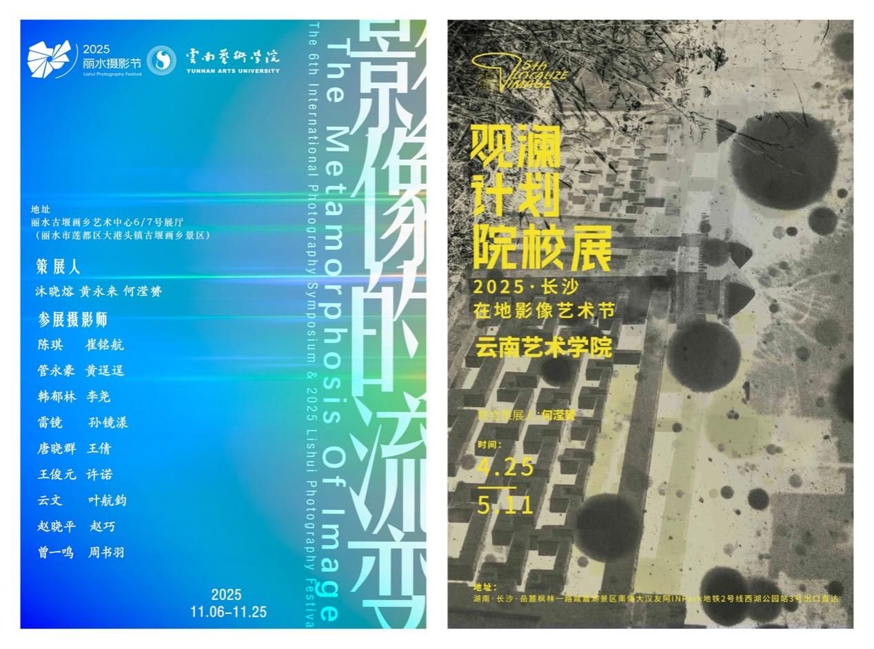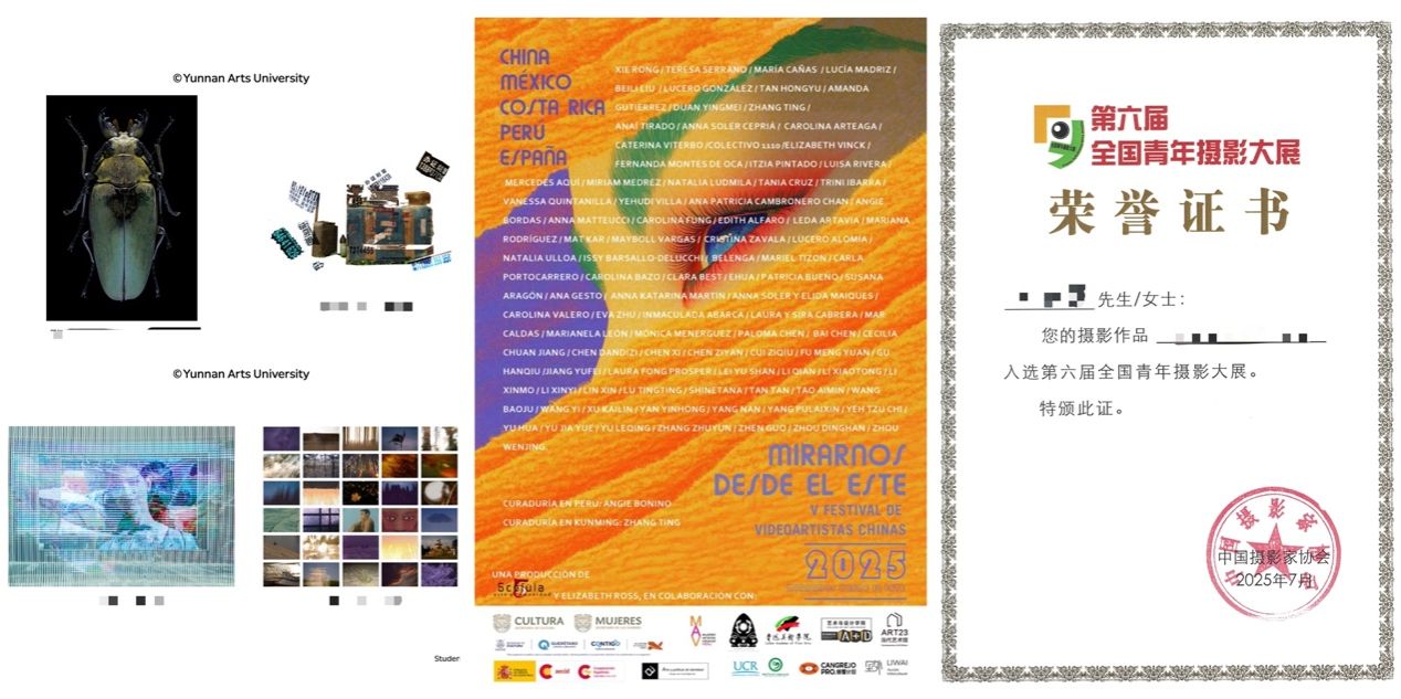 本年度教师向卫星、何滢赟作品入选“行走的画卷:第三届西部艺术展”主题展。教师何滢赟、欧阳鹤立及10名学生作品入选“2025仁川世界大学摄影节”。教师张婷、学生顾寒秋、李晓桐作品入围“东方之眼-地标中国——2025中国女性艺术家视频艺术节”。教师张婷、欧阳鹤立作品参展“中法当代艺术交流展”。教师欧阳鹤立、刘一帆在研国家艺术基金项目2项、云南艺术基金项目1项。本年度研究生获批云南省教育厅科学研究基金项目立项2项。研究生李添翼作品入选“第六届全国青年摄影大展”,教师黄永来获“优秀指导教师”荣誉。研究生崔铭航作品获“第十九届中国好创意暨全国数字艺术设计大赛”二等奖,教师何滢赟获“优秀指导教师”奖。研究生李添翼获“第十届云南文学艺术奖·云南摄影奖”。研究生余涛涛、李添翼作品入选“第十届云南省摄影艺术展”。此外,1名研究生参加“中国摄影家协会第八期中青年摄影人才培养计划培训班”;4名研究生参加“2025年Otherwhere中德国际艺术工作坊”。
