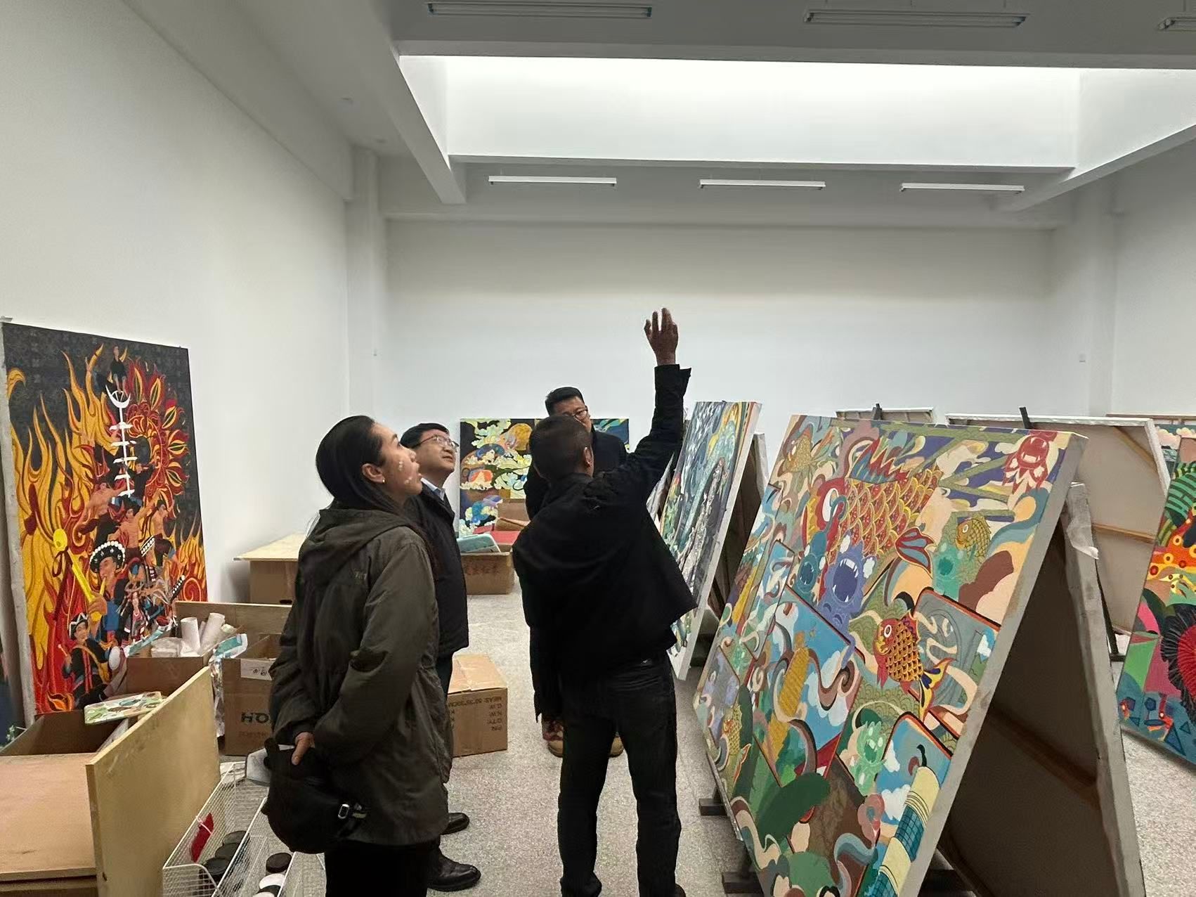 调研中,欧阳俊虎一行走进系部工作室,驻足观看学生创作,勉励同学们珍惜时光,在磨砺技艺中沉淀内心,以精品力作担当时代使命。