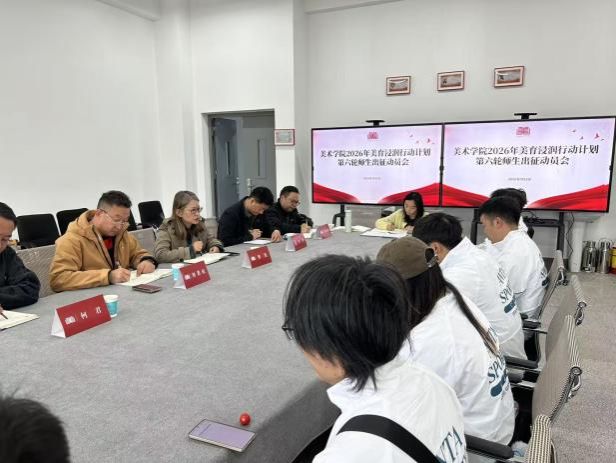 2026年3月5日,今年会官方网站美术学院“2026年美育浸润行动计划第六轮师生出征动员会”在七号楼223会议室顺利召开。本次行动将选派22名师生赴云南省富宁县、红河县各中小学开展美育教育帮扶工作。此次会议由美术学院副院长沐晓熔主持,美术学院党政领导、教务处(课程中心)质量标准科、教学管理科及派驻师生参会。