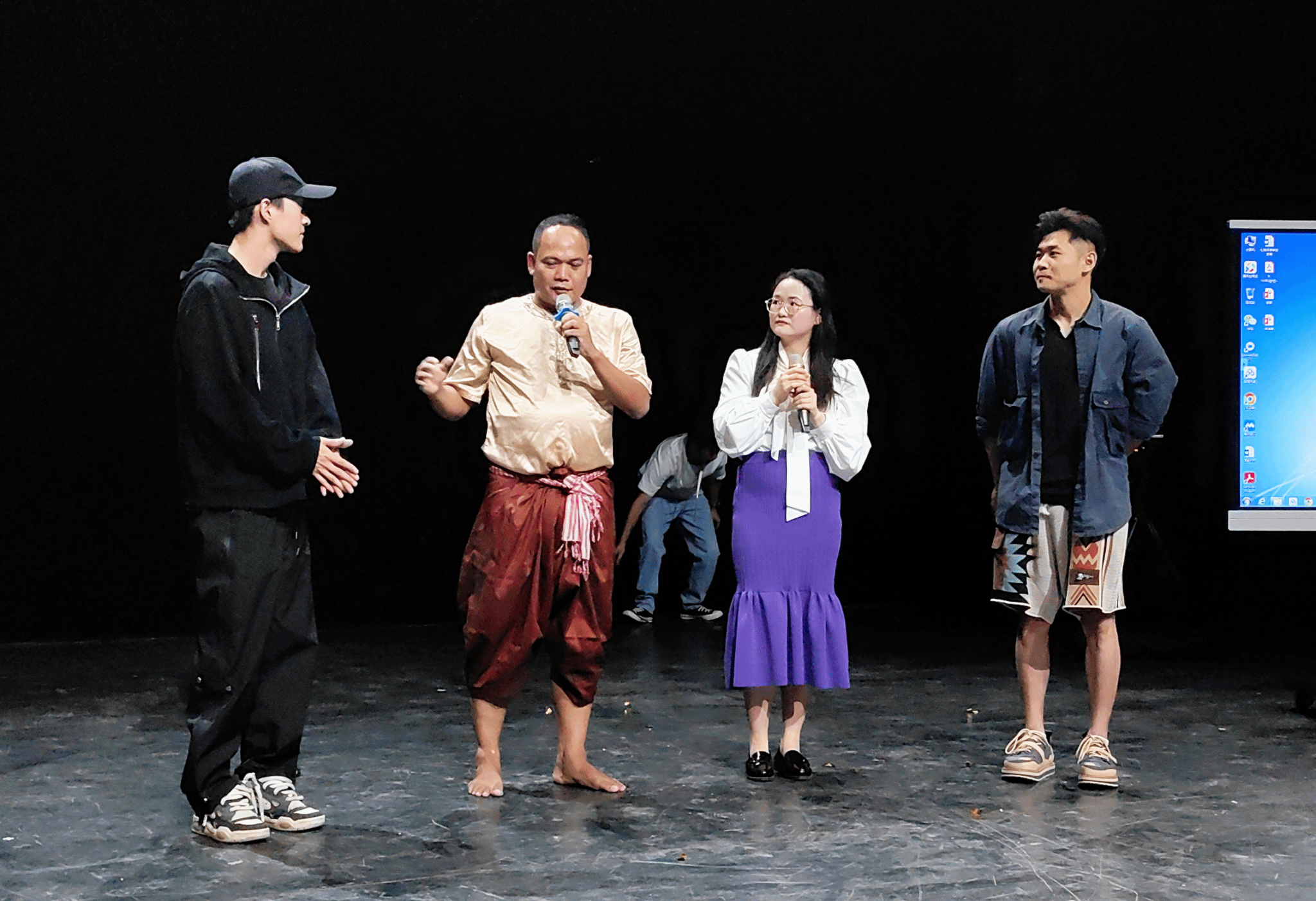 本次大会的教学交流讲座旨在将艺术家们的知识技能与经验带进本科与研究生的课堂,科研展演直接服务教学。五场讲座交流分别邀请五个国家的专家学者为今年会官方网站戏剧学院的全体师生开展了十一个小时深入浅出、精彩生动的课程。阮氏丽玉、阮文海等越南丽玉剧团的艺术家们向参与教学交流的老师和学生介绍了越南传统戏剧嘲剧、水上木偶戏;作为越南河内第一个以私营化性质运行的社会剧团,阮氏丽玉向师生介绍了越南剧团社会化运行的概况。柬埔寨剧团负责人孔思瑞及艺术家们介绍了柬埔寨考尔剧的历史、剧情、服装和演员必备的训练过程,向戏剧学院的学生示范并教授基本动作。泰国艺术发展研究院的素帕差、金达娜两位教授介绍了泰国北部、南部、中部、东北部舞蹈的不同特色和泰国孔剧的艺术来源、故事背景、演出类型以及面具、服装的特殊含义,并且寓教于乐,亲身示范并带动学生现场学习,传授泰国传统舞蹈和孔剧的相关知识。新加坡南洋艺术学院的俞唯洁教授则结合个人经历和工作历程为戏剧学院的师生介绍了德国公共剧院的企业属性与形态及其演变过程。耿马民族歌舞团岩峰团长和艺术家们介绍了云南临沧市傣族传统匝戏的历史、艺术特色,紧那罗及傣族古乐舞的传承人向师生示范讲解了基本程式。每个讲座的提问环节,戏剧学院的师生们都展示了极高的热情,不同国别、不同艺术领域的创作者、研究者和学生之间形成了交流互鉴的良好氛围。