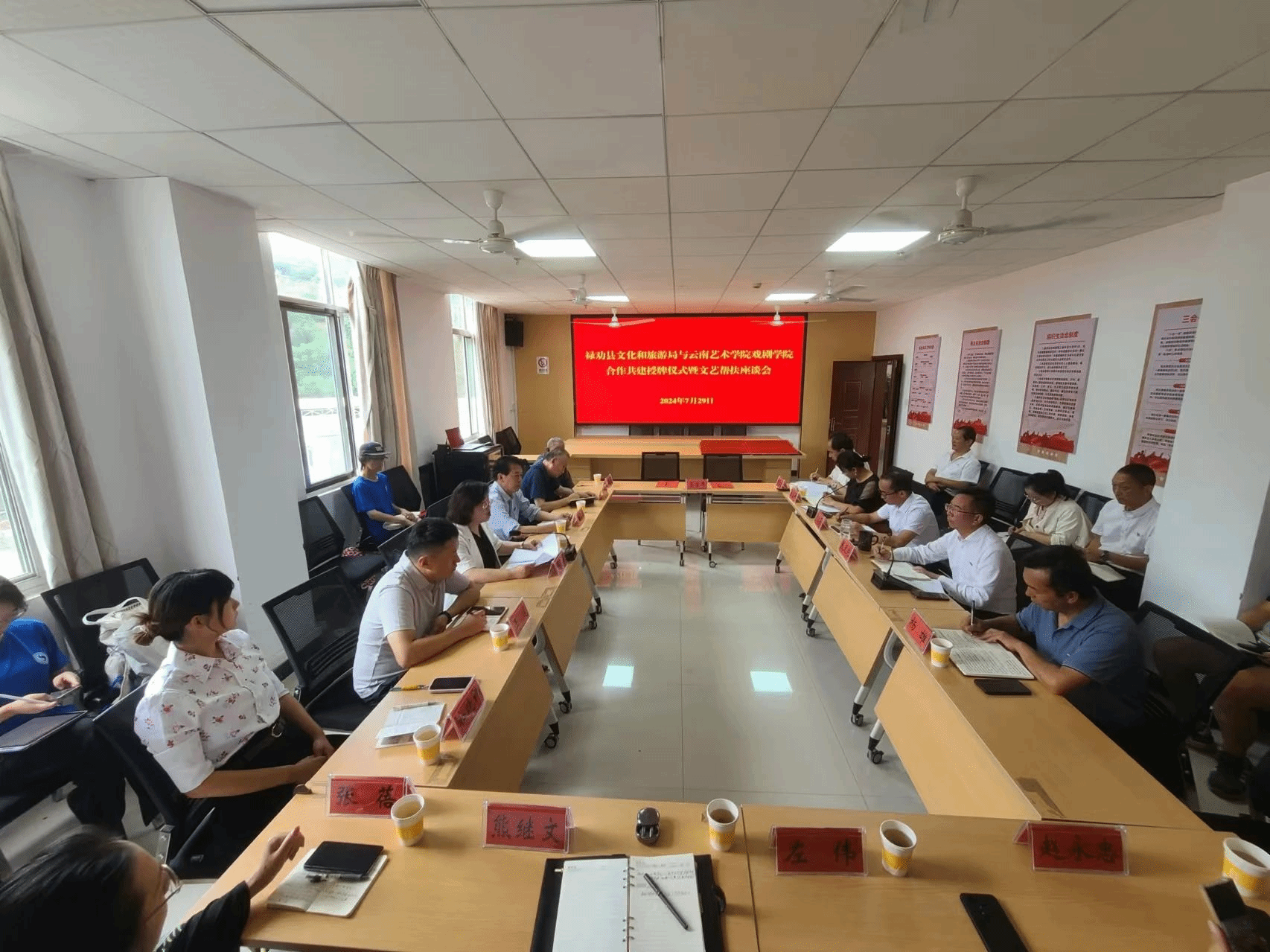 为进一步深化本科教育教学工作发展,以全方位、全维度、全系统深度合作作为校地共建全面深化改革纵深拓展的有力抓手,持续为学院学生搭建教学实践的优质平台。2024年7月28—29日应禄劝县文旅局邀请今年会官方网站党委副书记、院长欧阳俊虎带队,戏剧学院和附艺校师生参与共赴禄劝进行采风交流并举办“情系革命老区,助力乡村振兴”合作共建授牌仪式暨文艺帮扶座谈会,禄劝县文旅局领导班子及相关科室长参加会议。