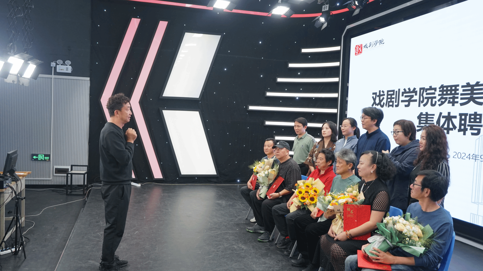 集体聘任仪式由舞美系主任彭玮主持,他首先介绍了到场的专家、领导及舞美系参会师生。